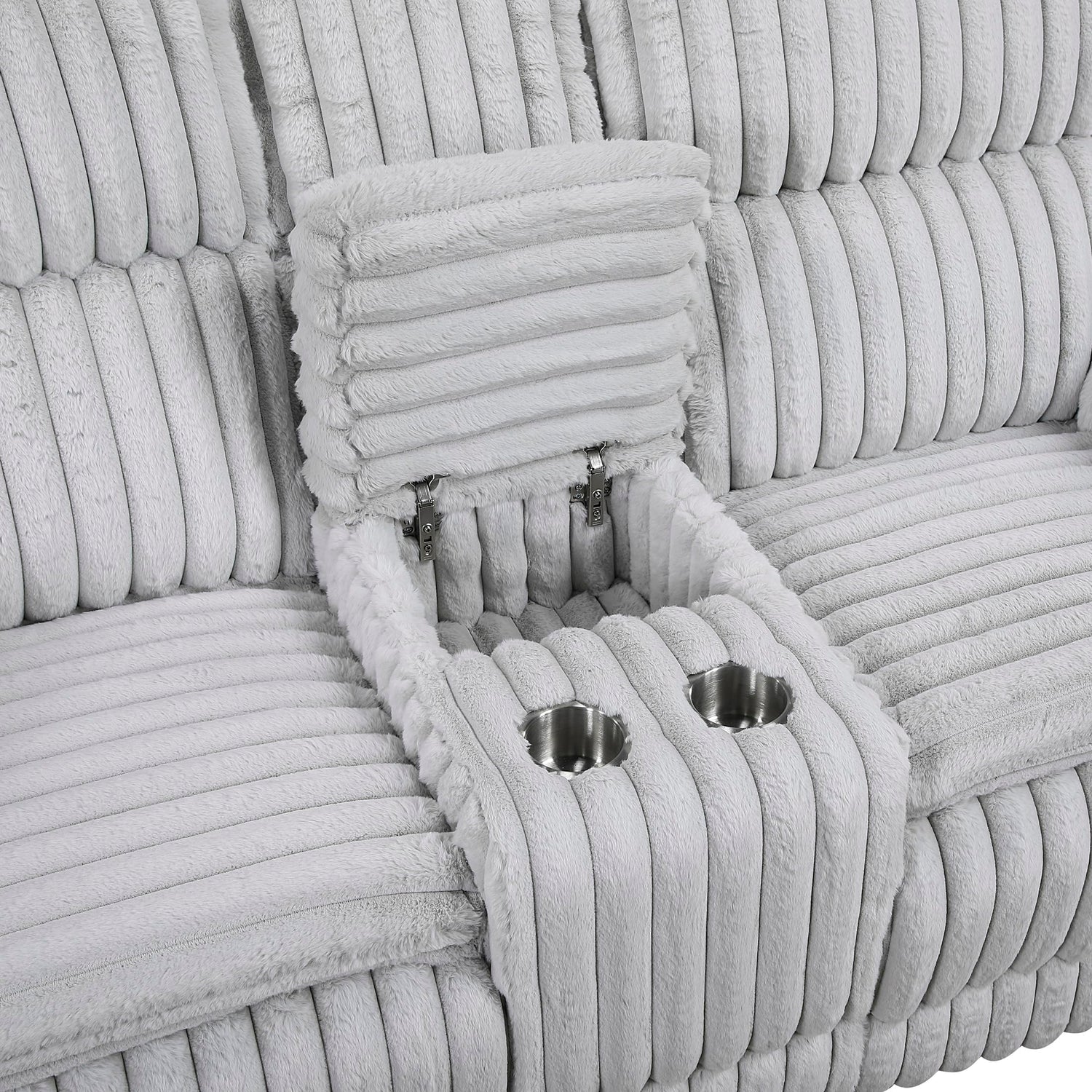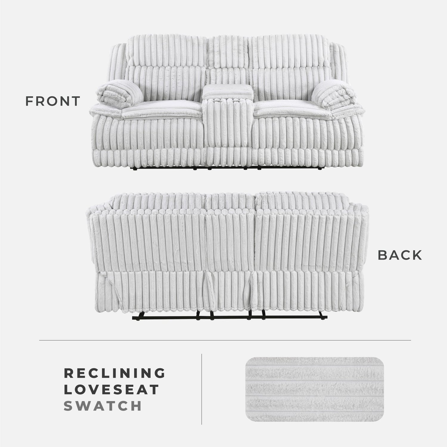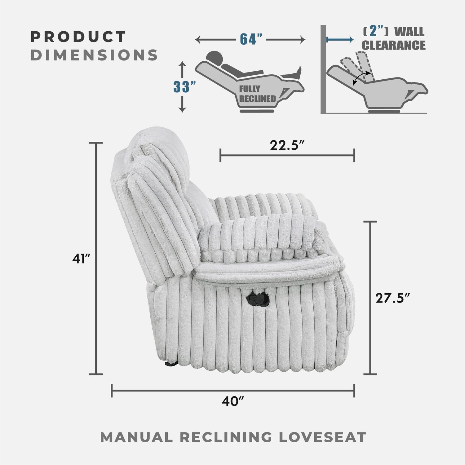 Lexicon Manual Double Reclining Loveseat with Center Console, Corduroy Manual Wall Hugger Recliner Couch, Pillow Top Arms, Cup Holders, Hidden Storage, Cozy Loveseat for Living Room, Gray