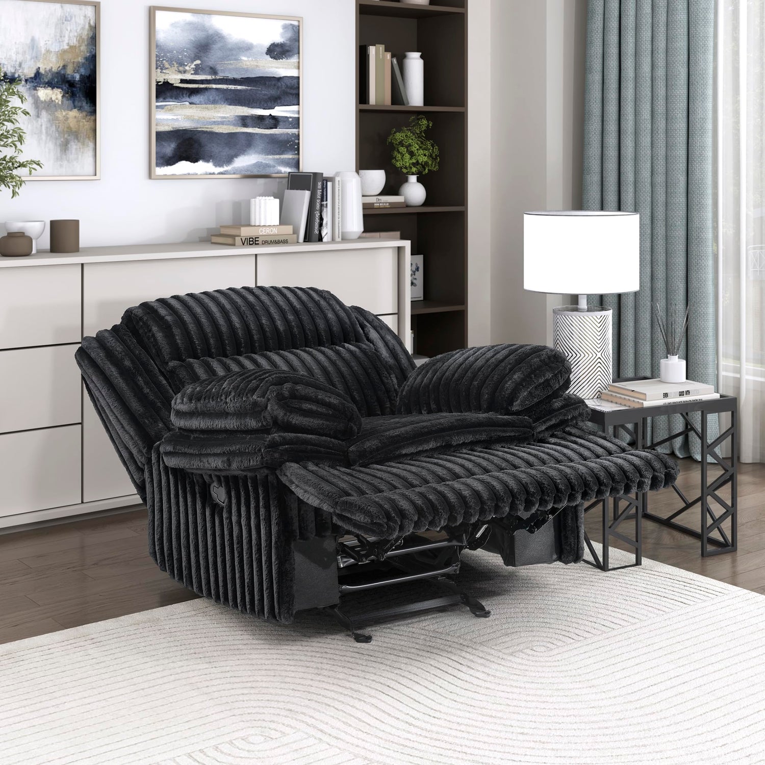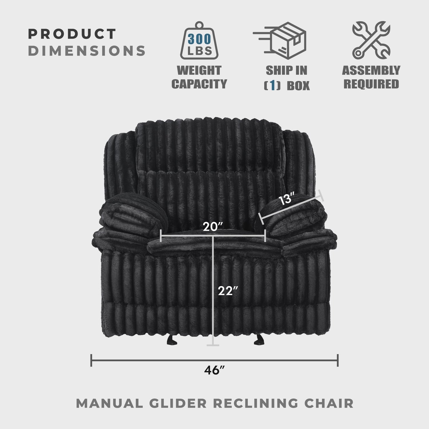 Lexicon Manual Glider Recliner Chair, Corduroy Manual Tab Pull Reclining Chair with Pillow Top Arms, Plush Cushions, Cozy Theater-Style Accent for Living Room/Bedroom, Easy Assembly, Black