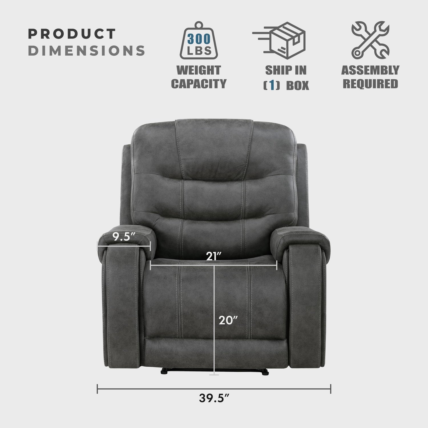 Details: Few reclining chairs demand attention like this one. It's wrapped in high-quality microfiber upholstery that's sure to please. Every inch of the recliner is tailored to perfection, with clean, refined lines that take transitional design to a new level. The single sofa chair is designed to provide an elegant and comfortable experience-the perfect arc of the armrest fits the ergonomics, making it more comfortable when you put your arm on it; retractable footrest easy to adjust the modes to meet your requirement; the deep seat of the recliner is 21 inches providing an extremely comfortable seating experience. Whether you're looking for a cozy spot to rock your little one to sleep in the nursery or need a comfy chair for movie nights in the living room, this recliner chair has got you covered. With its seamless blend of form and function, this gliding chair is sure to become a favorite spot for relaxation in your home.