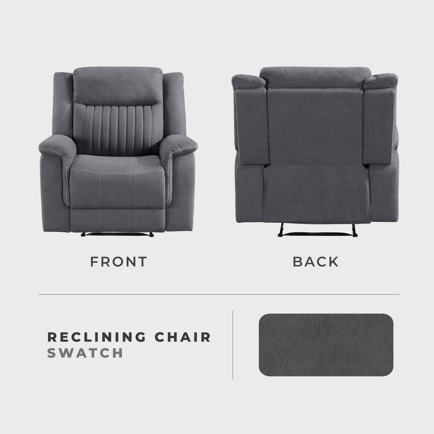 Lexicon Manual Recliner Chair, Polished Microfiber Reclining Sofa Chair, Home Theater Seating, Wall Hugger Manual Recliner for Living Room/Office/Apartment, Gray