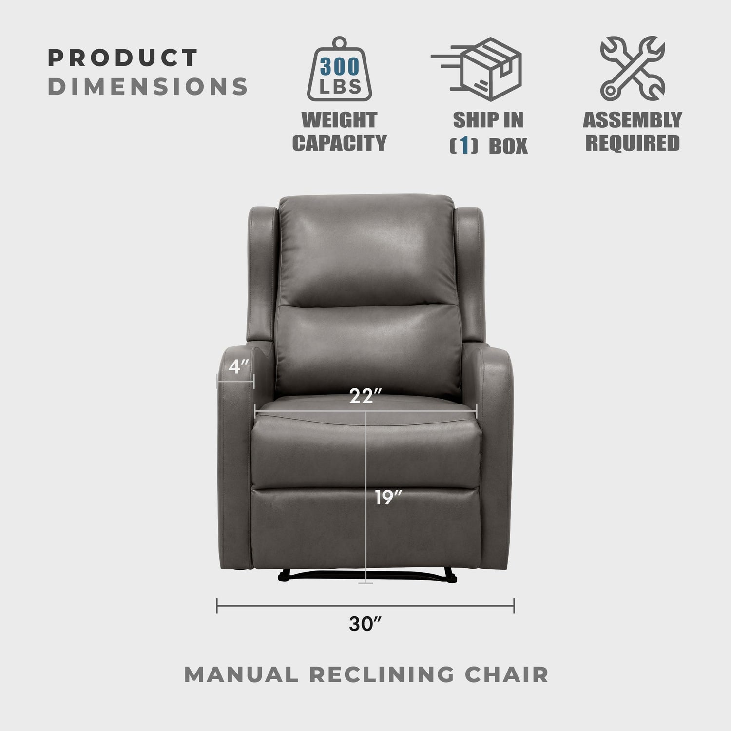 Lexicon Manual Recliner Chair, Reclining Sofa Chair, Home Theater Seating, Wall Hugger, Manual Recliner for Living Room/Office/Apartment, Easy Assembly, Gray Faux Leather