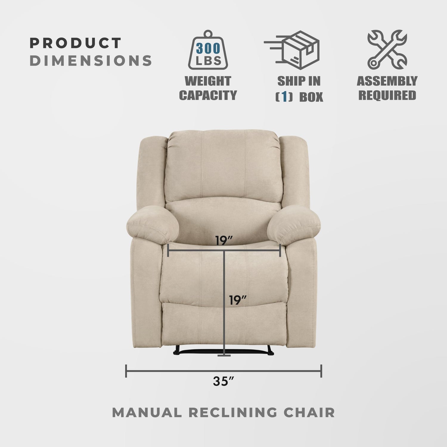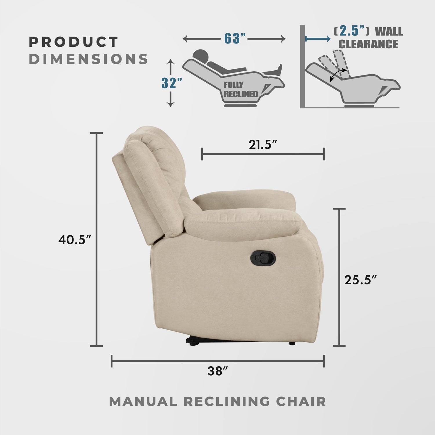 Lexicon Manual Recliner Sofa Chair, Home Theater Seating, Wall Hugger Manual Reclining Nursery Chair for Bedroom/Living Room/Office/Apartment, Oatmeal Textured Fabric