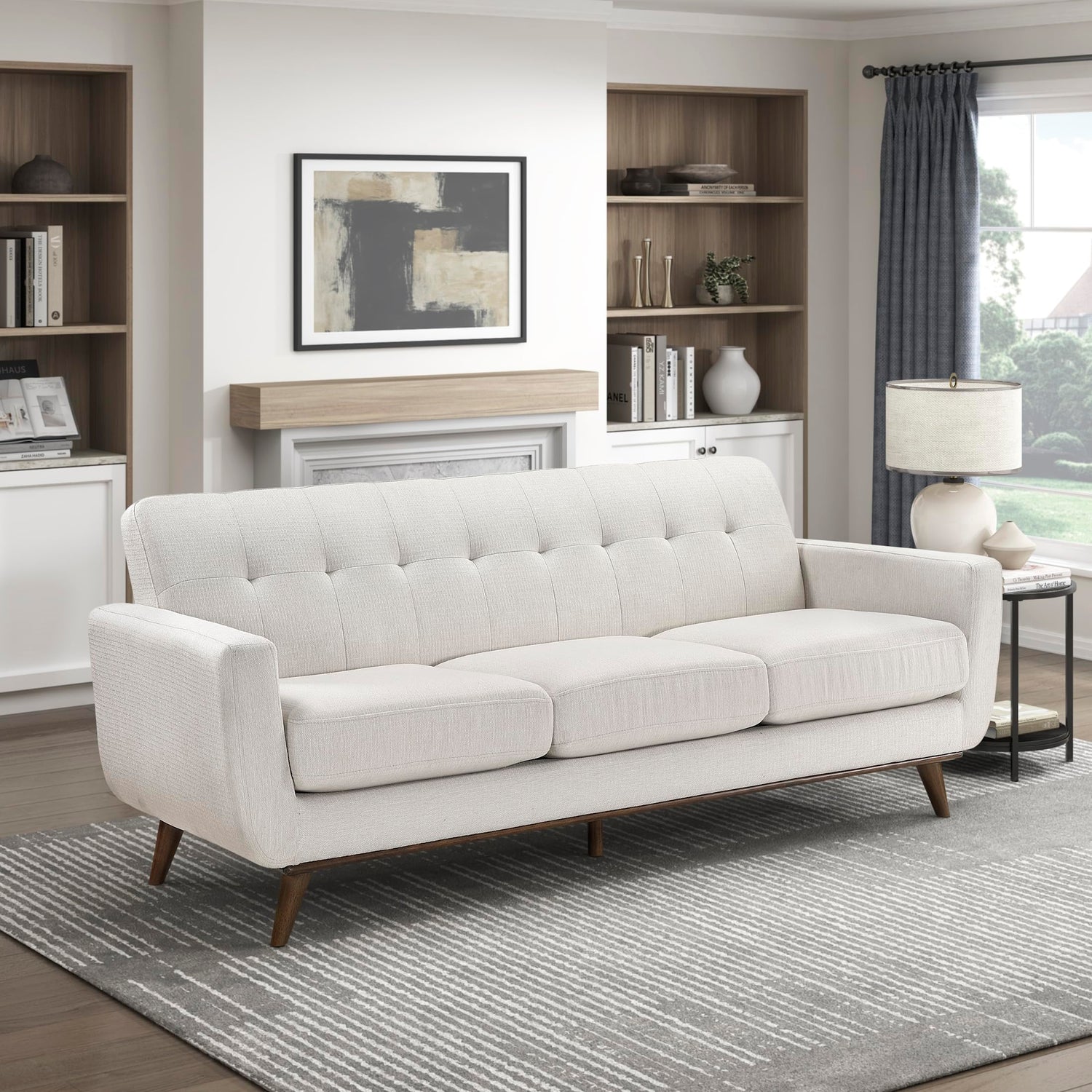 Lexicon Modern Accent Couch, Textured Fabric Upholstered Sofa with Brown Wood Legs, Track Arms, Tufted Couch Back, 3 Seater Sofa for Living Room/Office/Waiting Room, Beige