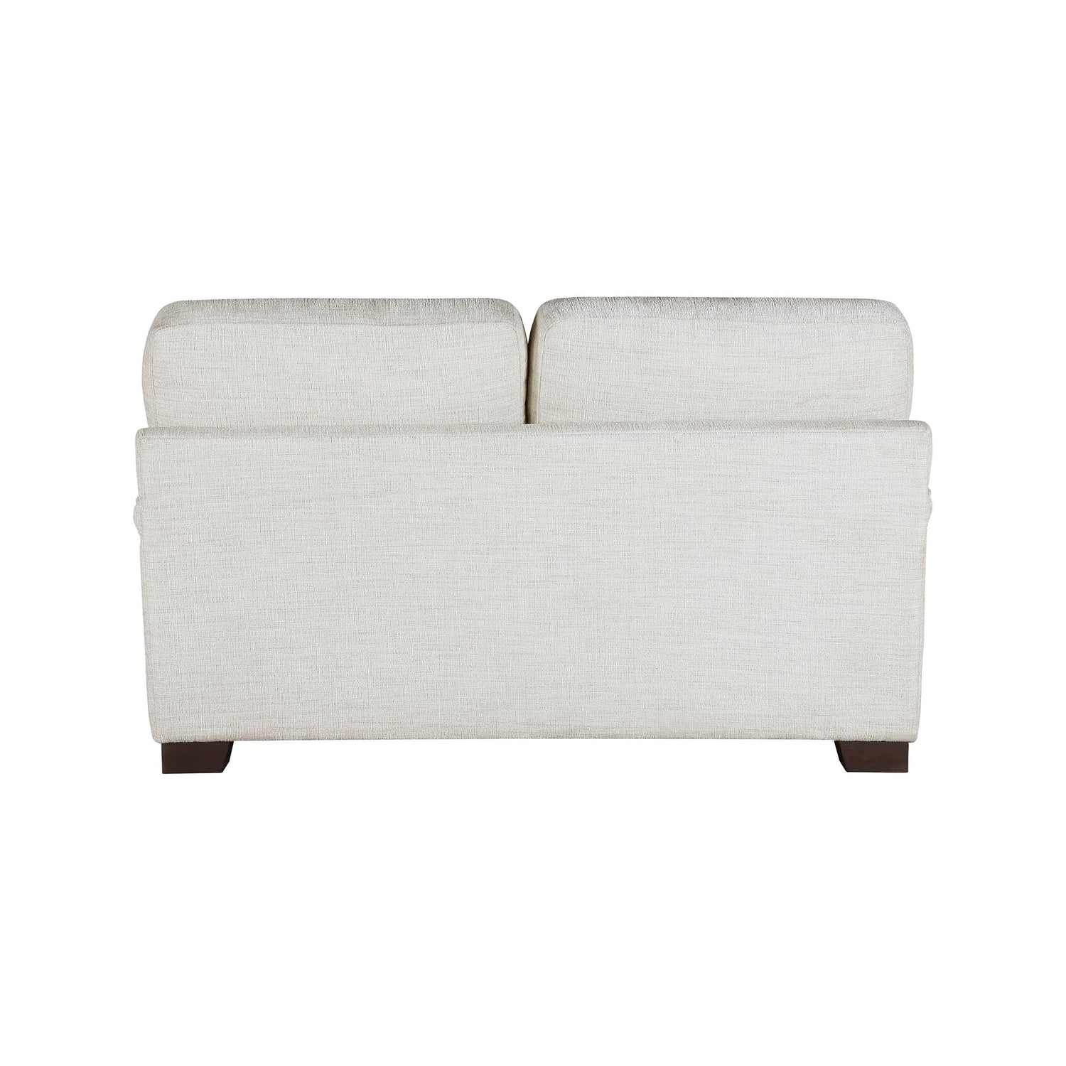 Details: Create a cozy and contemporary living space with this cream upholstered sofa love seat. Featuring a T cushioned backrest, square arm design and solid wood block feet, this 2 seater sofa gets inspiration from the modern design. The chenille upholstery perfectly complements the block legs in espresso finish for a warm and welcoming feeling, which makes the whole piece more chic and stylish. To bring you ultra comfort, the seat and backrest are well stuffed with soft and high-density foam, which helps to relieve muscle fatigue after a hard-working day. The cozy loveseat square armrests add more comfort and aesthetic details. With a sleek and classy look, this white love seat fits many spaces, such as the balcony, living room, bedroom, guest reception, office, apartment and more.