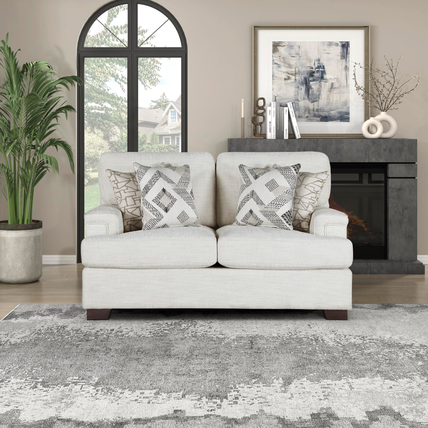 Lexicon Modern Couch, Chenille Loveseat with Deep Seats, 4 Accent Pillows, Track Arms, Removable Cushion Covers, Upholstered Living Room Furniture, 2 Seater Couch, Cream