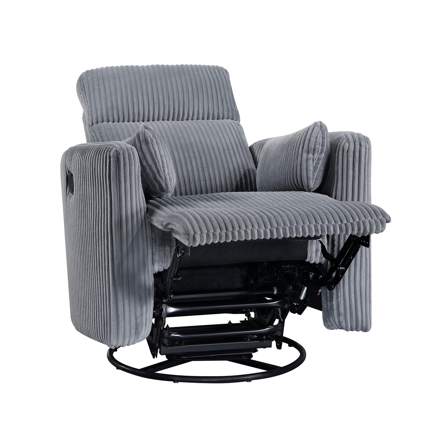 Lexicon Modern Swivel Glider Recliner Chair, Nursery Glider, Corduroy Fabric Upholstery Recliner with 2 Lumbar Pillows, Manual Reclining Sofa Chair for Living Room/Office/Apartment, Grey