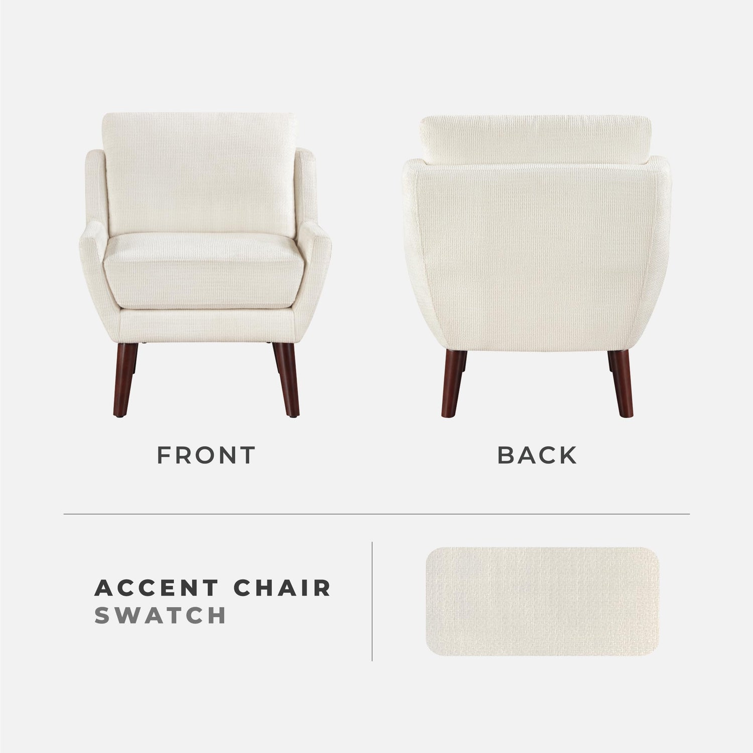 Details: Enhance your space with this stylish accent chair, designed for both beauty and relaxation. Built with a sturdy plywood frame, it features high-density foam padding over pocket coils for lasting support. Wrapped in soft chenille fabric upholstery, the reversible back and loose seat cushions ensure customizable comfort, while removable cushion covers make cleaning a breeze. The sleek, tapered solid wood legs in an espresso finish add a touch of sophistication, making this chair a perfect fit for any modern or mid-century space. Ideal for lounging, reading, or simply elevating your decor!