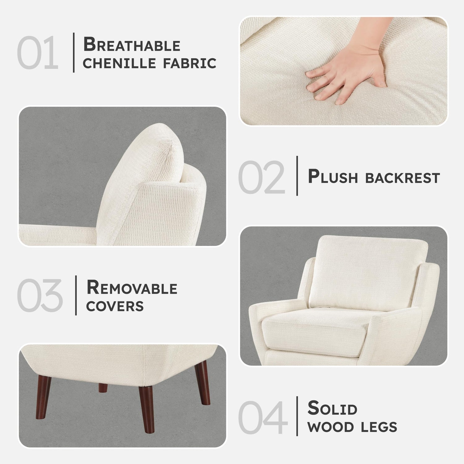 - [Comfort] Crafted with high-quality, ultra-soft chenille, this reading chair provides a luxurious seating experience and exceptional durability for years to come. The removable seat and back cushions, featuring covers that can be easily cleaned or swapped for a fresh look. Finished with the minimalistic modern wingback design