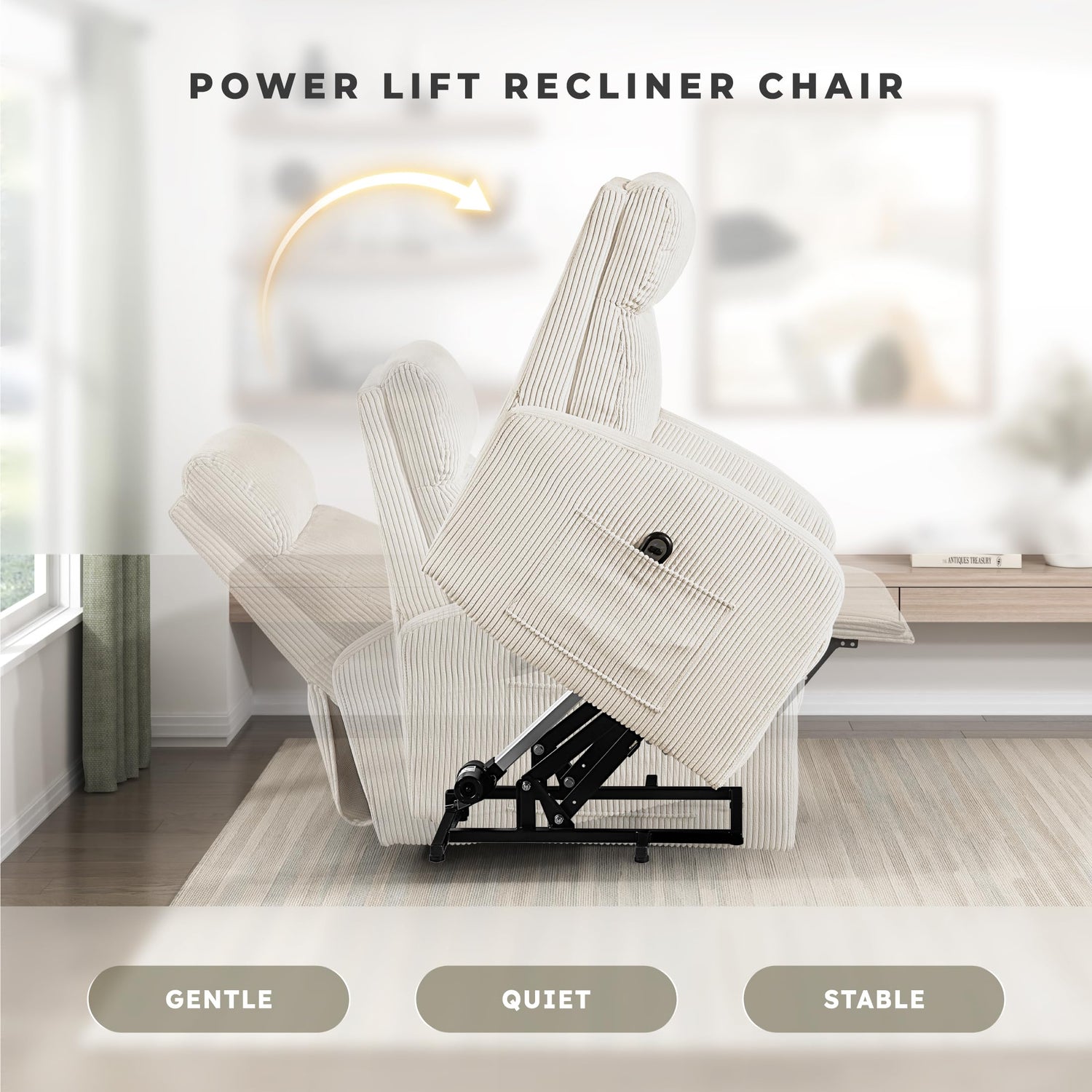 Lexicon Power Lift Recliner Chair for Elderly with Remote Control, Gentle Lift Motion, Side Pocket Armrest, Corduroy Upholstered Electric Recliner for Living Room/Bedroom, Easy Assembly, Beige