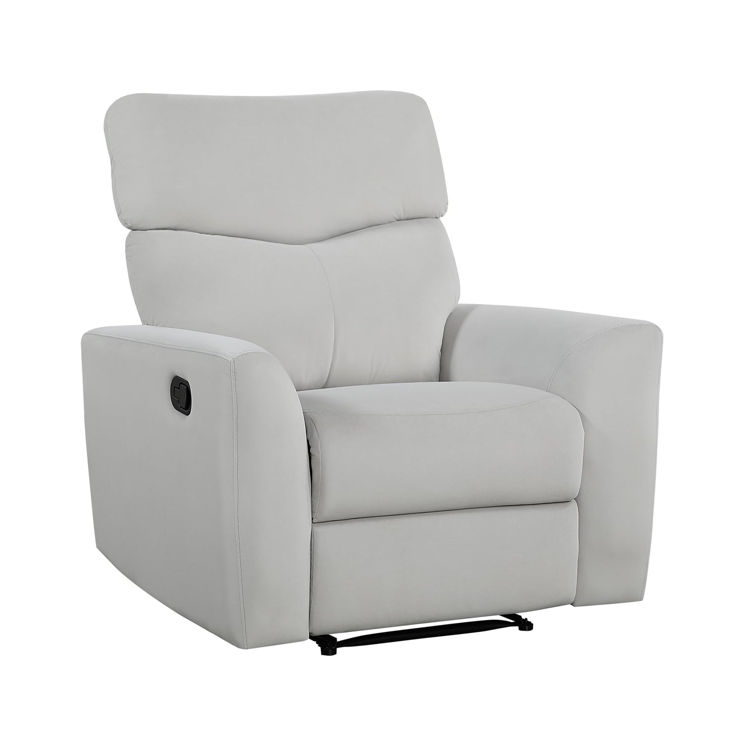 Details: Introducing the Lexicon recliner chair—the epitome of comfort and style, perfect for enhancing your living room, office, or apartment. Designed for those who appreciate the intersection of functionality and chic design, this reclining sofa chair transforms any space into a luxurious haven. Its sleek gray fabric seamlessly blends with all types of living room furniture, making it a versatile addition whether you already have a vanity couch or are seeking that perfect accent chair. As a wall-hugger recliner, it ensures that even in the coziest apartments or home theater settings, you never have to compromise on space or convenience. Crafted with quality in mind, the Lexicon recliner chairs for adults is more than just another piece of regular living room set; they're your favorite reading chair and potential centerpiece among other sofas for living room gatherings. With its manual reclining feature, transitioning from an upright chair to a lounging recliner is as easy as unwinding after a long day at work. Pair it with an ottoman for added comfort to create an inviting seating area in any room. This product promises enduring satisfaction whether you're nestled up watching movies or entertaining guests. The Lexicon small recliners for small spaces stands out not only because of its plush feel but also due to its versatile use cases.