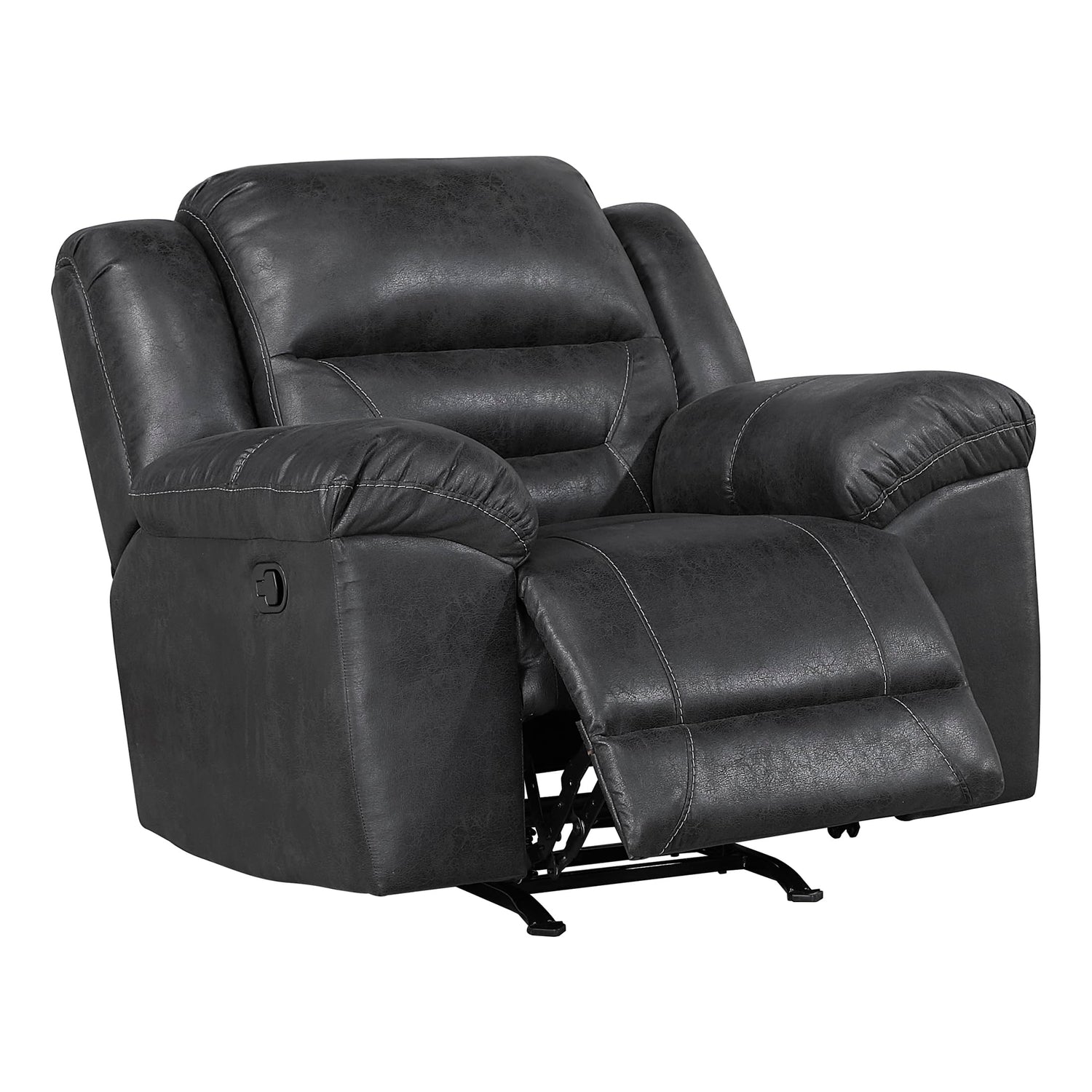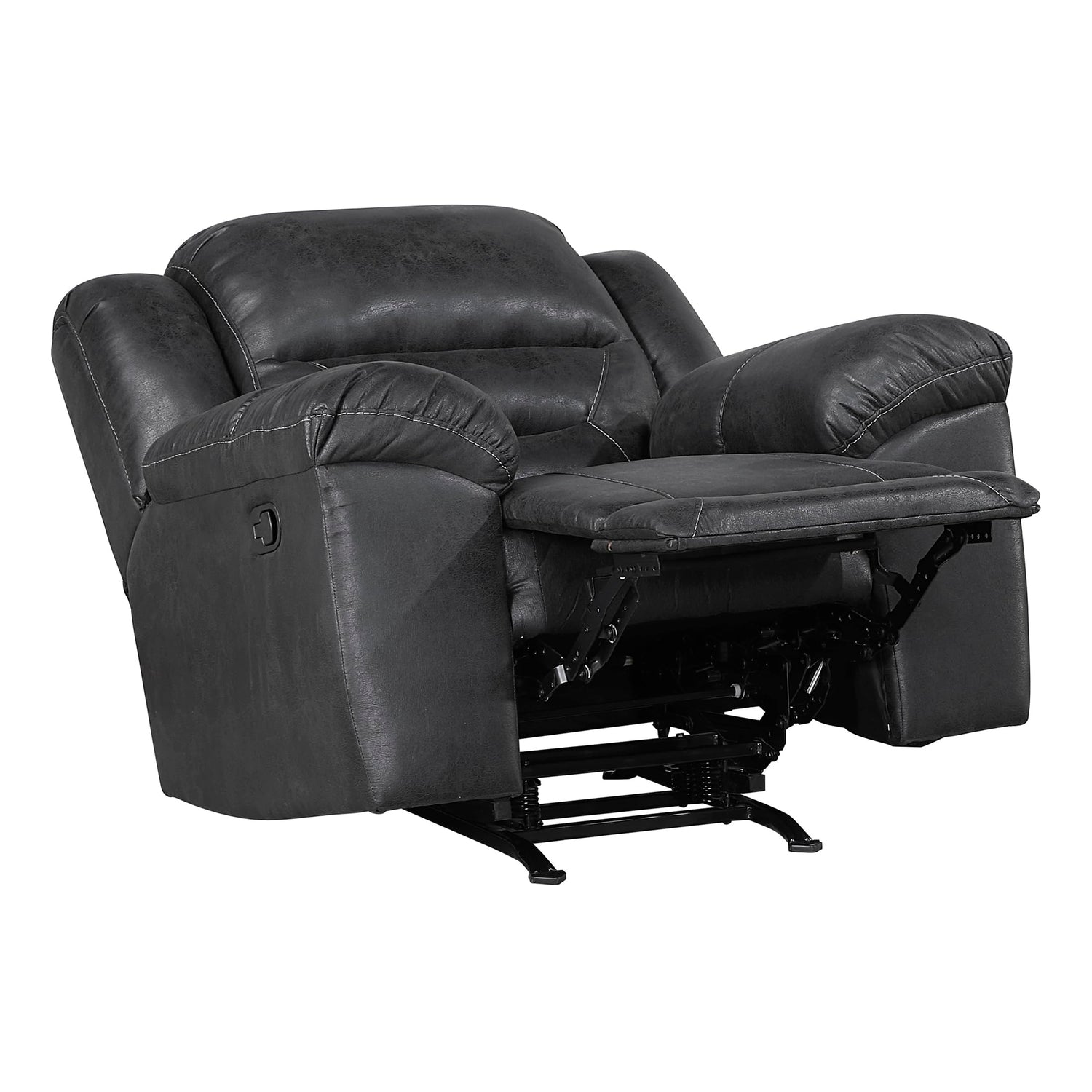 - [Mid Century Modern Recliner] The rocker recliner chair, with black polished microfiber covering its frame, provides just the right support and comfort to the human body. The armrests enhance the design, making it the perfect addition to your living room furniture set.