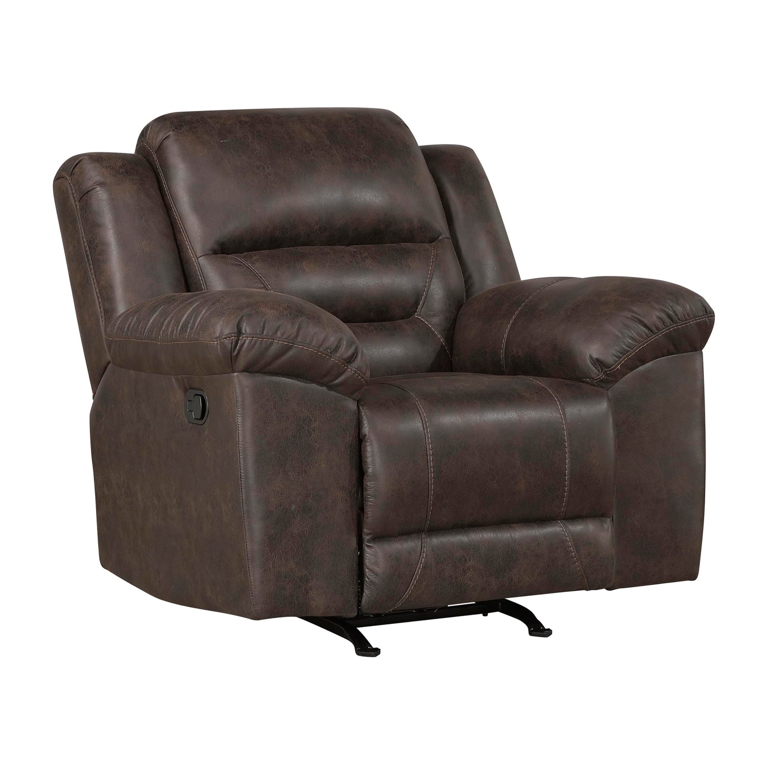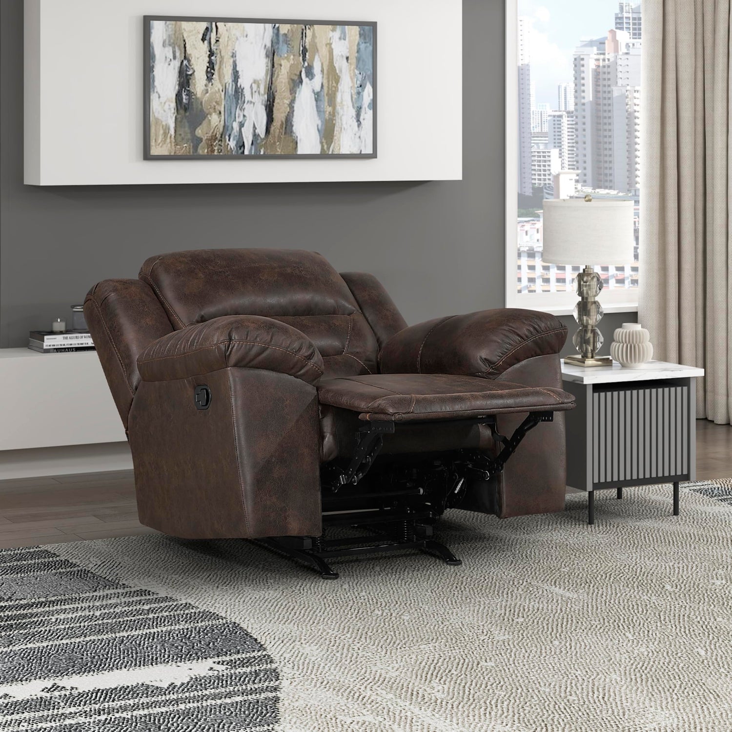 - [Mid Century Modern Recliner] The rocker recliner chair, with brown polished microfiber covering its frame, provides just the right support and comfort to the human body. The armrests enhance the design, making it the perfect addition to your living room furniture set.