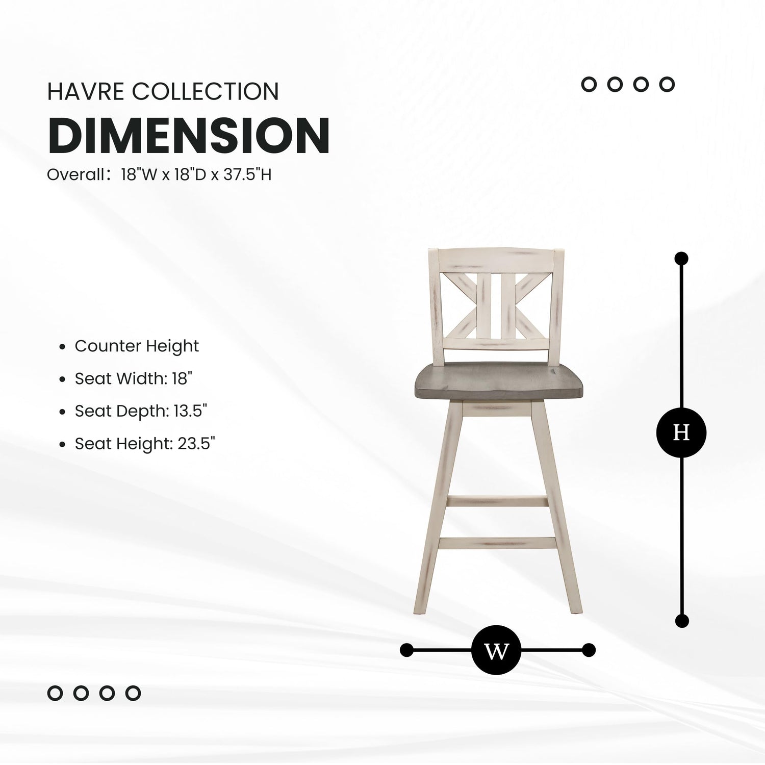 - [Top-In-Class Comfort] A white sand-through finish graces the solid rubberwood 24-inch swivel X-back counter height chair, highlighting the veneer.