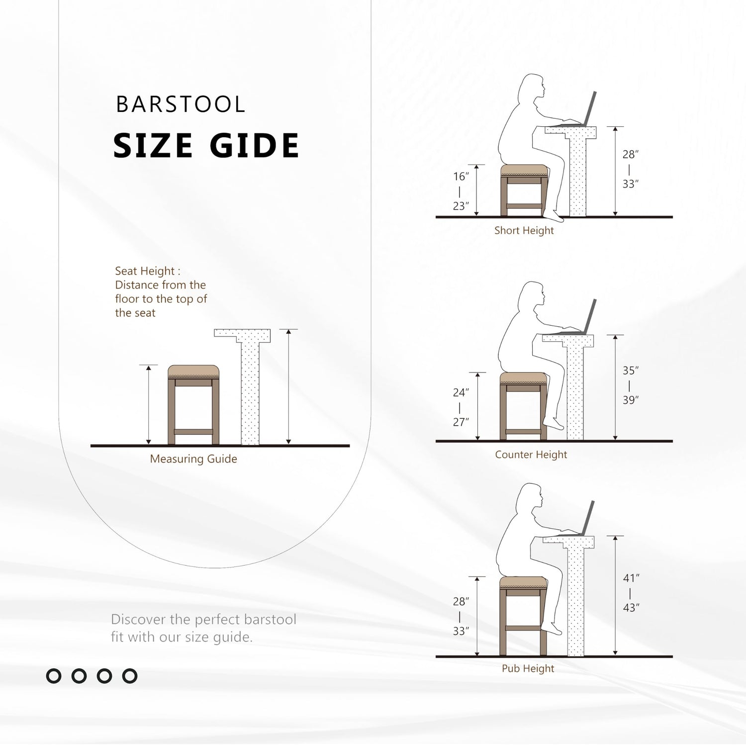 - [Perfect Size & Sturdy] The kitchen stool measures: 18"W x 18"D x 37.5"H; Seat dimensions: 18“W x 13.5“D; Seat Height: 23.5“. The solid wood frame makes bar stool feel sturdy and can support up to 250 lbs