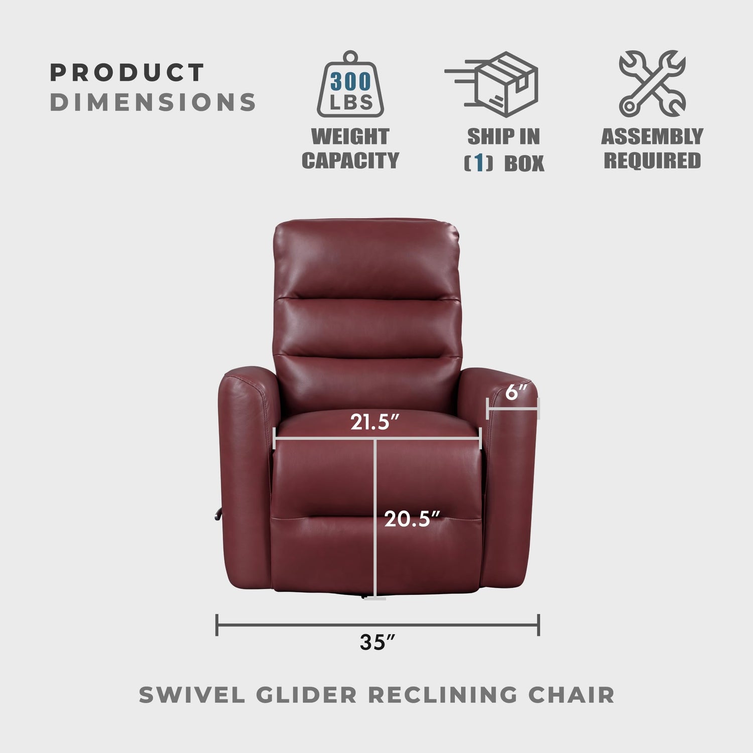Lexicon Swivel Glider Recliner Chair, Comfy Nursery Glider, Faux Leather Recliner, Manual Reclining Chair for Living Room/Office/Apartment, Red