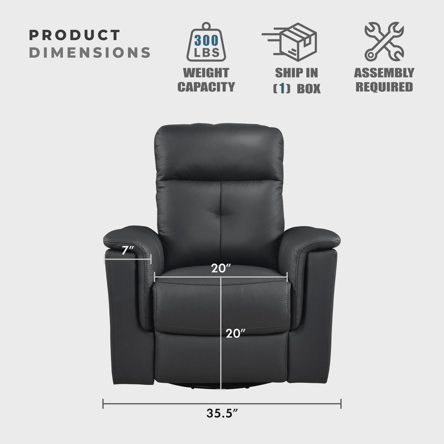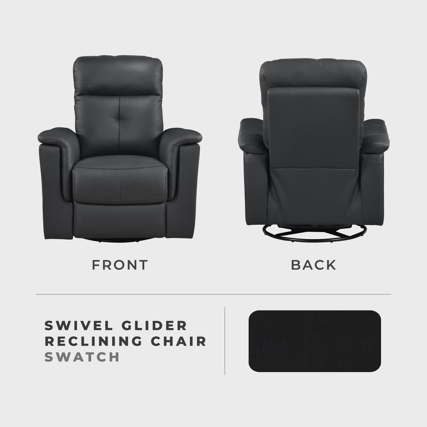 Lexicon Swivel Glider Recliner Chair, Comfy Nursery Glider, Top Grain Leather Match Recliner, Manual Reclining Chair for Living Room/Office/Apartment, Black