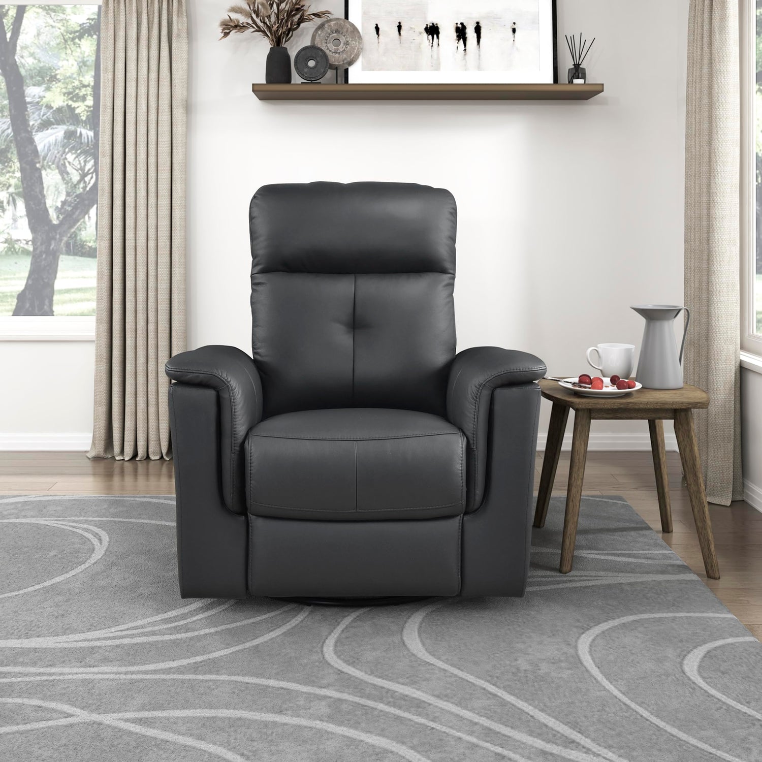 - [Ultimate Relaxation] The recliner chair is wrapped in 100% top grain leather where the body touches and all else faux leather that's sure to please. Relax in this wonderful swivel recliner with soft padding, headrest and extended footrest.