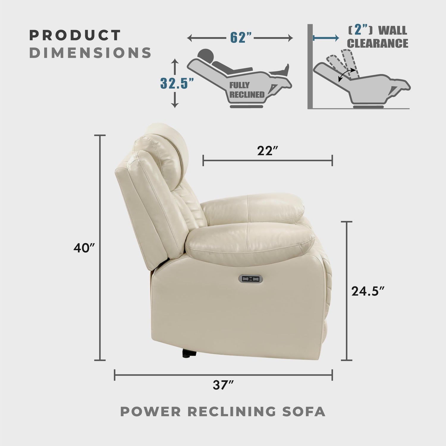 - [Generous Size] Reclining couch measures: 87"W x 37"D x 40"H; Seat measures: 67"W x 22"D x 20"H; Arm height: 24.5"; Fully reclined length: 62"; Fully reclined height: 32.5"; Required back clearance to recline: 2"; Doorway width: 24.5"