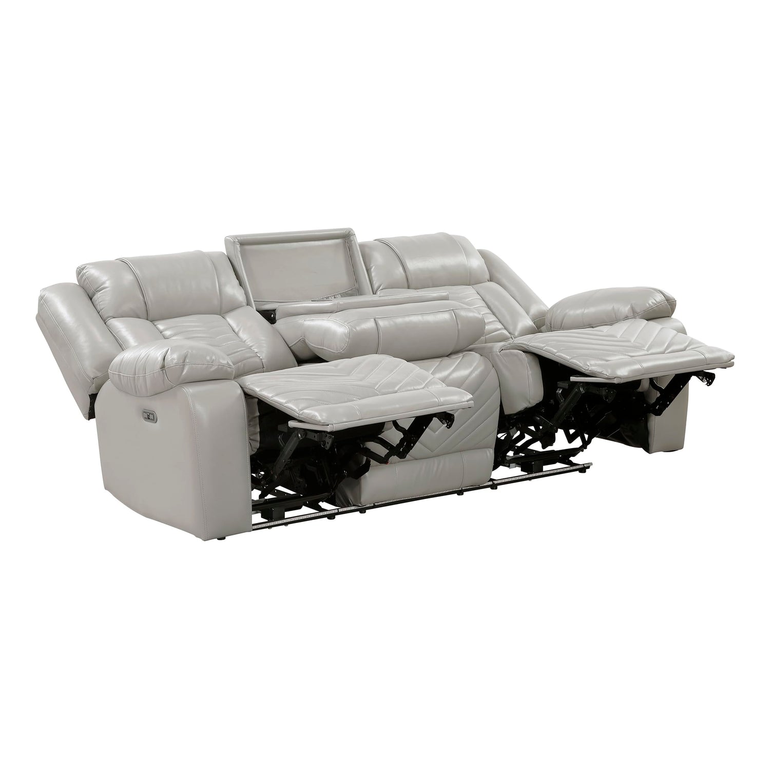 Details: Prepare to be enveloped in an oasis of modern comfort with this extraordinary reclining sofa. Beneath the supple, premium faux leather, adorned with striking V-pattern stitching, lies a foundation of robust solid wood and a metal-reinforced seat, promising lasting durability. Sink into the plush embrace of foam padding over pocket coils, each movement powered by a whisper-quiet, one-touch control, allowing you to effortlessly find your perfect repose. But this is more than just a sofa; it's an entertainment hub. A drop-down center table unveils dual cup holders, a convenient magazine pocket, and a seamless wireless charger, ensuring everything you need is at your fingertips. Stay connected with integrated USB charging ports, and as evening descends, bask in the ambient glow of the captivating underneath LED lighting, transforming your living room into a cinematic sanctuary. This sofa isn't just a piece of furniture; it's an experience.