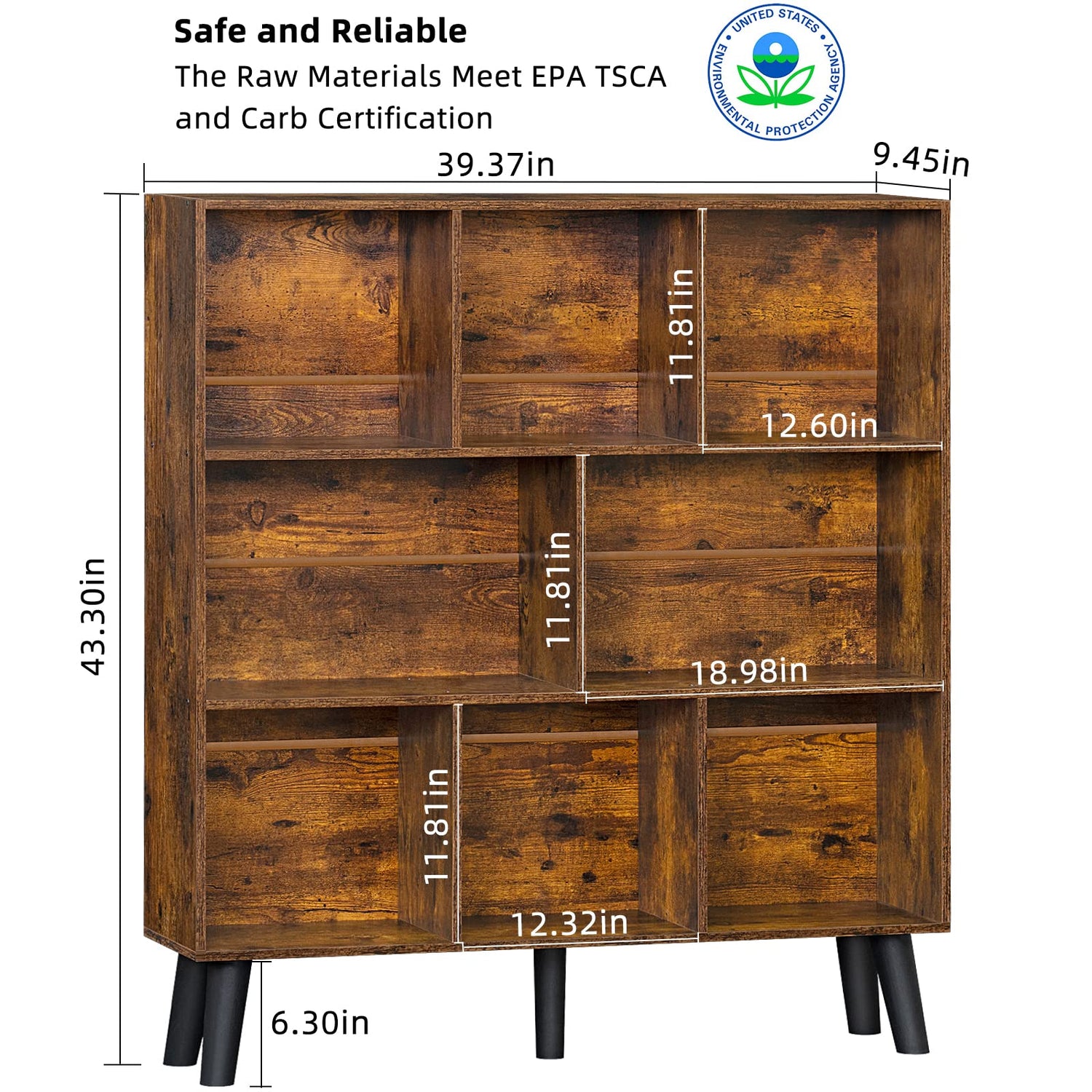 Elevate your interior design while staying organised with the LEYAOYAO 8-Cube Rustic Brown Mid-Century Modern Bookshelf. A perfect blend of quality, style, and practicality awaits you.
