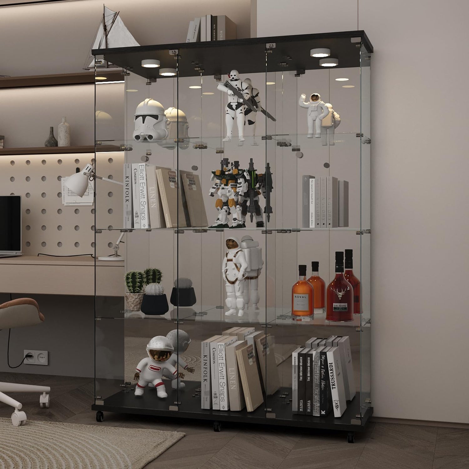 - Wide Use: Curio cabinets with glass doors provide sufficient capacity to display action figures, wine, toys, art, etc. It can be used as a display cabinet in the living room, a wine cabinet in the kitchen, a bookshelf in the study, or a hand-made display rack in the collection room. We recommend securely fixing the glass cabinet onto the wall to ensure the safety of you and your family