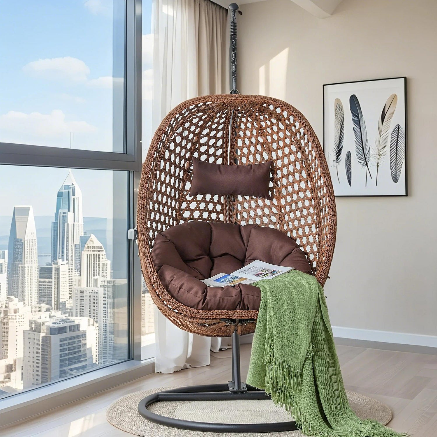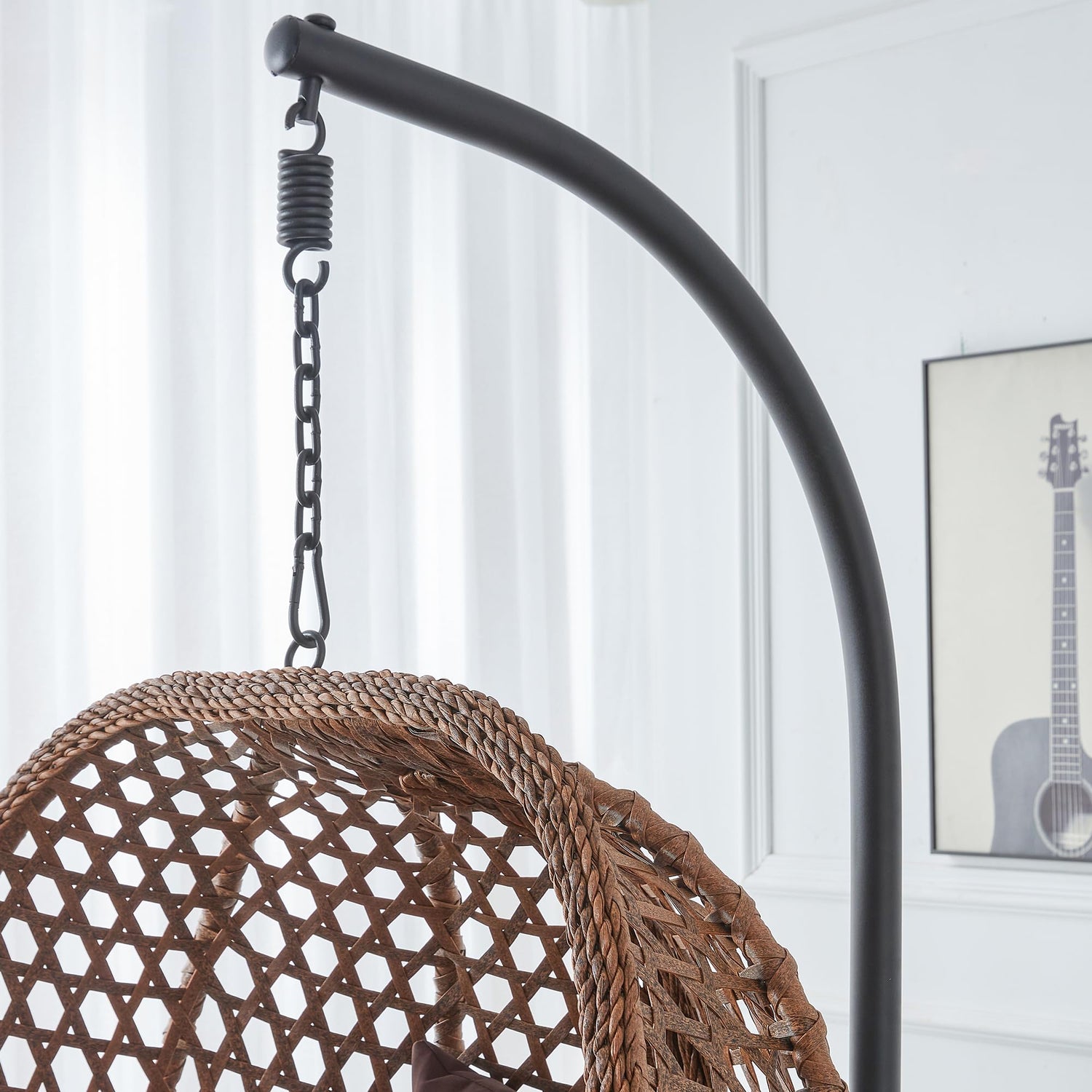 LFVFFA Egg Swing Chair with Stand Outdoor Indoor, Hanging Egg Chair with Cushions and Pillow,300lbs Capacity for Porch, Patio, Bedroom, Balcony, Brown