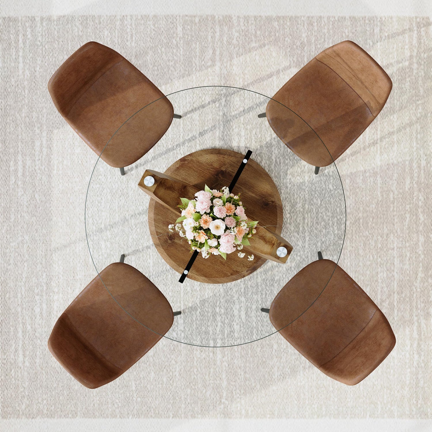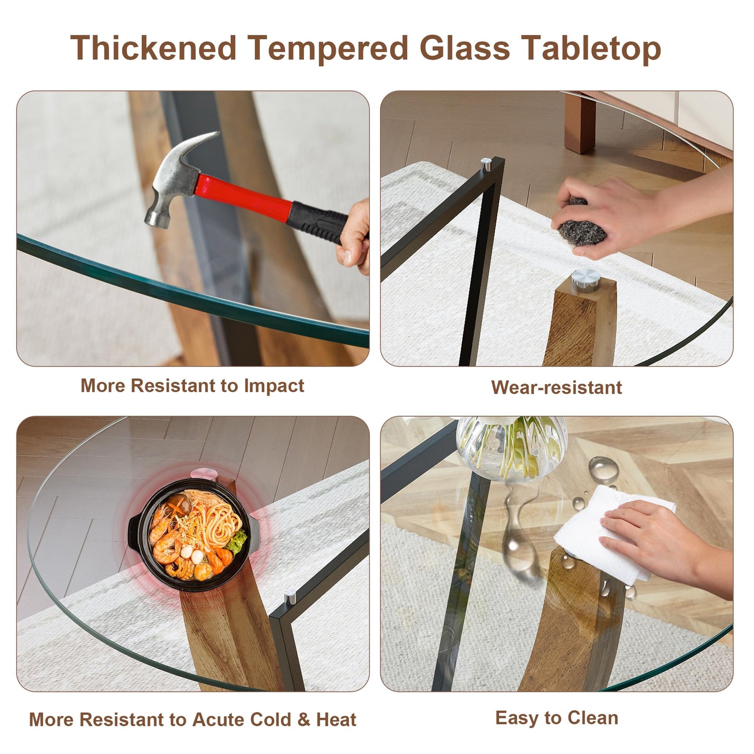 - High-Quality Glass Dining Table: The tabletop is made of thick tempered glass, 0.4 inches thick, resistant to scratches and wear, offering exceptional durability and stability. A sturdy wooden base paired with a metal frame ensures this dining table will be a reliable, long-lasting choice for your home