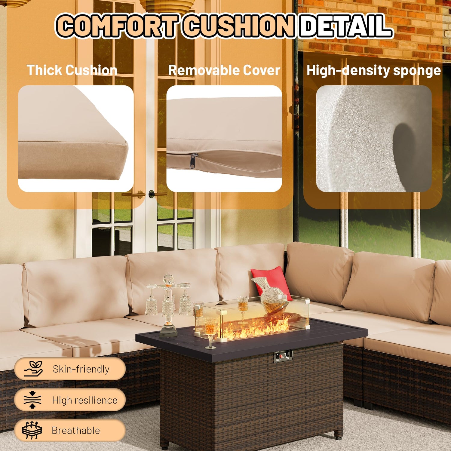 - Complete Outdoor Set: The LHBcraft 8 PCS Outdoor Patio Rattan Furniture Set includes a sectional wicker conversation set and a 50,000 BTU propane fire pit table, Patio set have many configuration options based on your preference and geography,providing everything you need for a stylish and functional outdoor space.