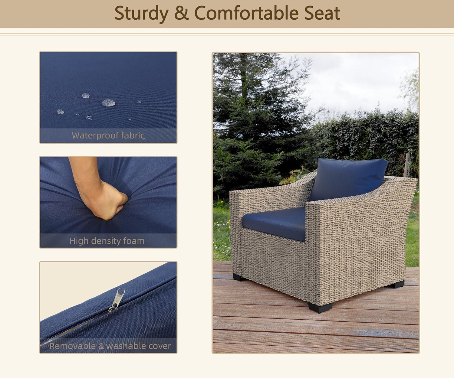 - 🏡【SPACIOUS & COMFORTABLE】This outdoor furniture set features a larger size with higher seating height and depth. Combined with an ergonomic design, it provides an exceptional outdoor experience.