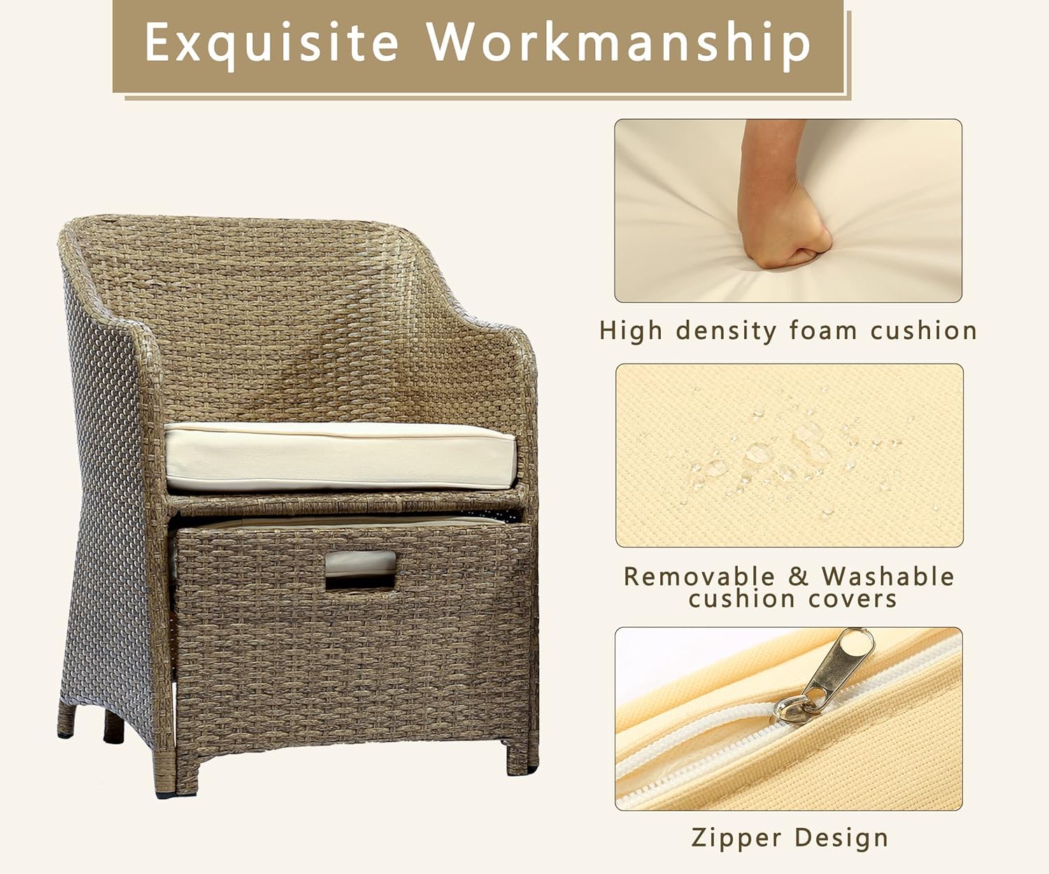 - SPACE SAVING DESIGN: Comfortable ottomans can be stored according to your needs slide in or out of a compartment below the chairs to fit perfectly on your small balcony, porch, or landing.
