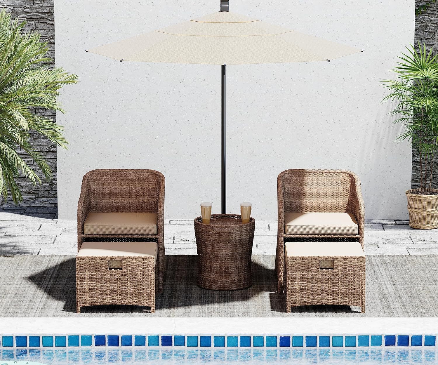 LHBcraft Outdoor Patio Wicker 5-Piece Furniture Set, No Assembly Required All-Weather Rattan Conversation Bistro & Storage Table for Garden, Porch, Balcony and Deck (Beige)