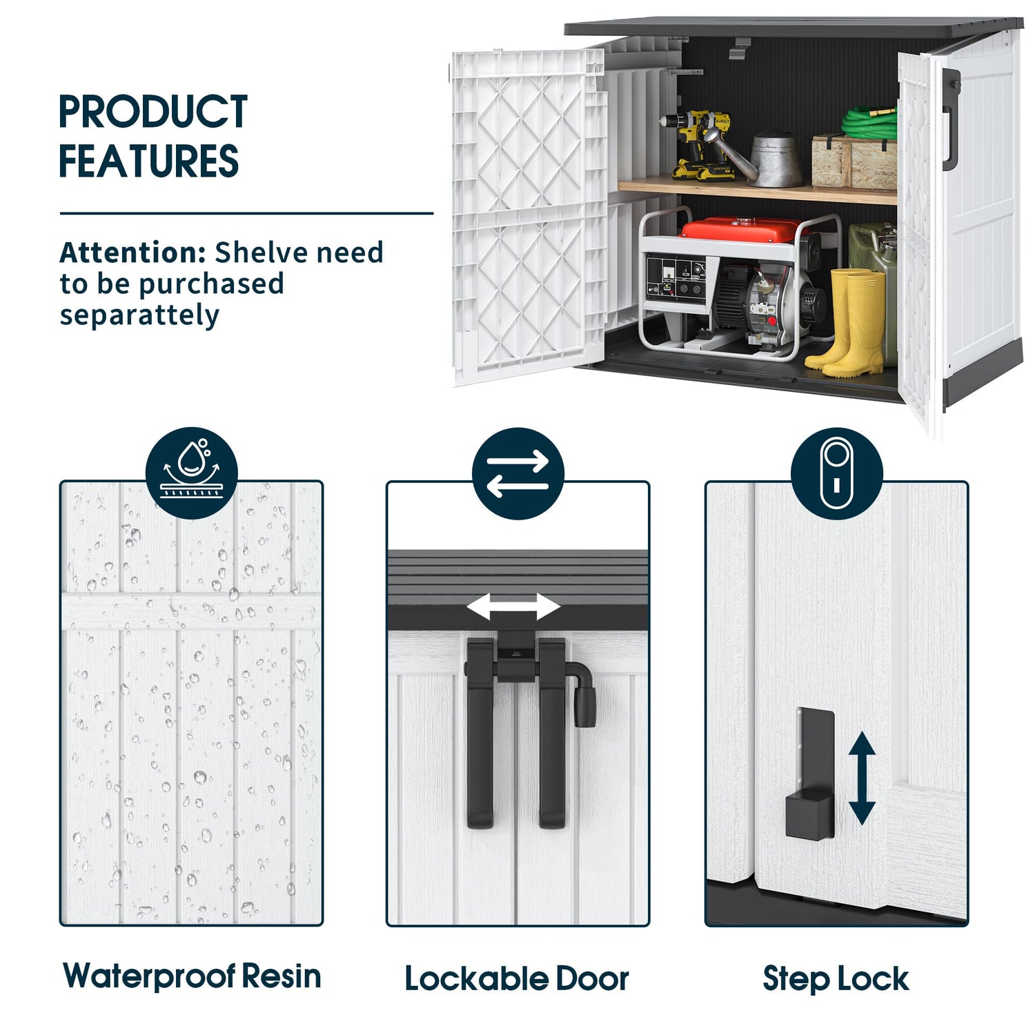 - ALL-WEATHER RESISTANT - This storage shed is made of UV-resistant resin for all-weather use, easy to clean and maintain; the complete box top and slot splicing makes the storage box excellent waterproof ability.