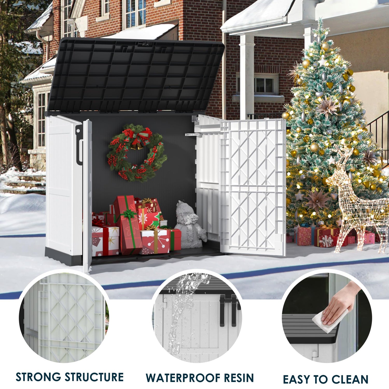 - ALL-WEATHER RESISTANT - This storage shed is made of UV-resistant resin for all-weather use, easy to clean and maintain; the complete box top and slot splicing makes the storage box excellent waterproof ability.