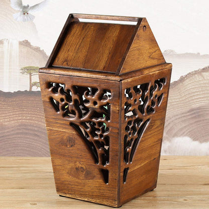 liangzishop Trash Can Waste Bin Antique Wooden Trashbin Shake Cover Teak Waste Bin Hand Hollow Carved Trash Can Indoor Solid Wood Trash Box 3.2
