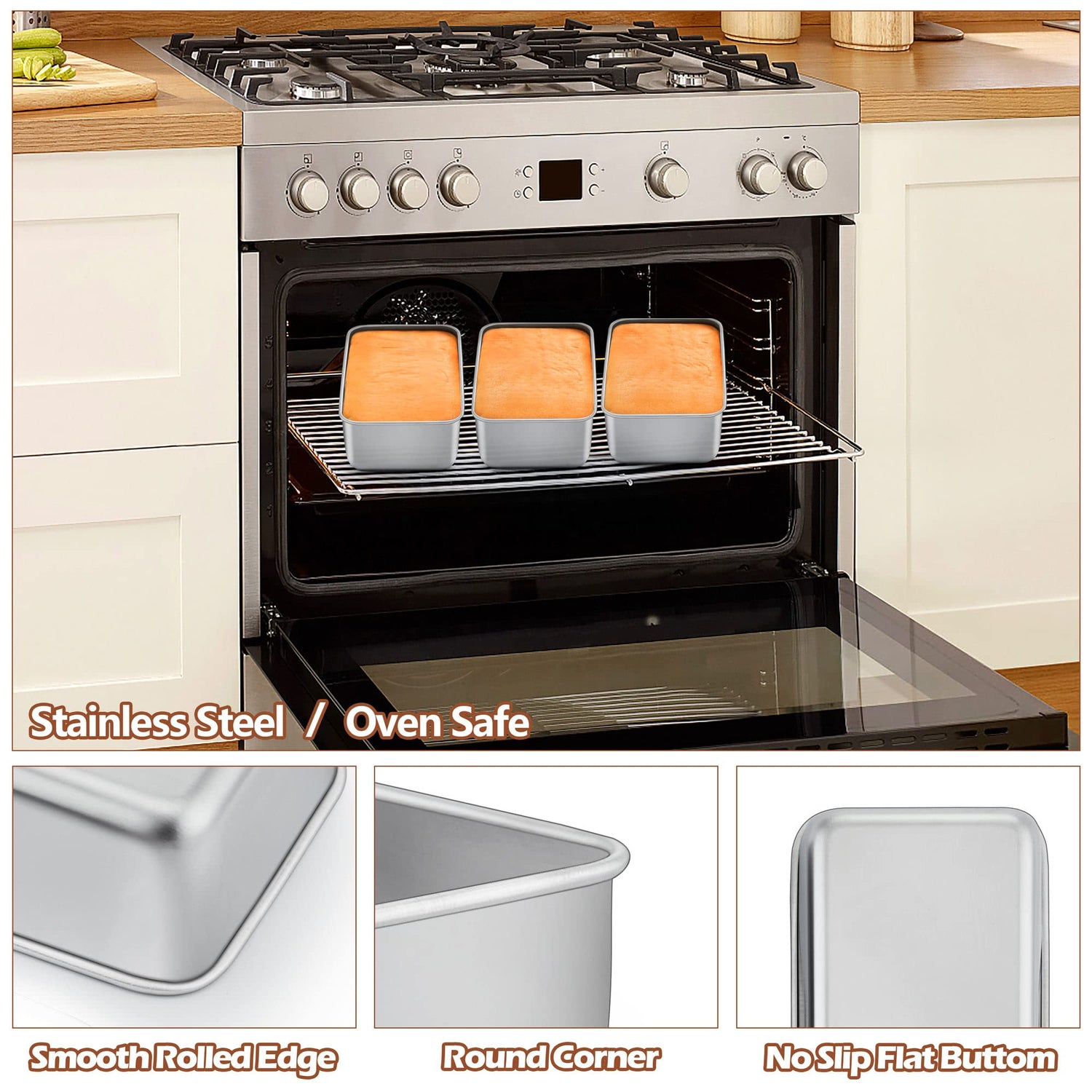 - Health material, loaf pans for baking bread is constructed of heavy-gauge food-grade stainless steel without chemical coating, It can’t peel off and don’t produce harmful substances at high temperature, healthy for daily baking use, a great alternative to foil, glass and aluminum loaf pan