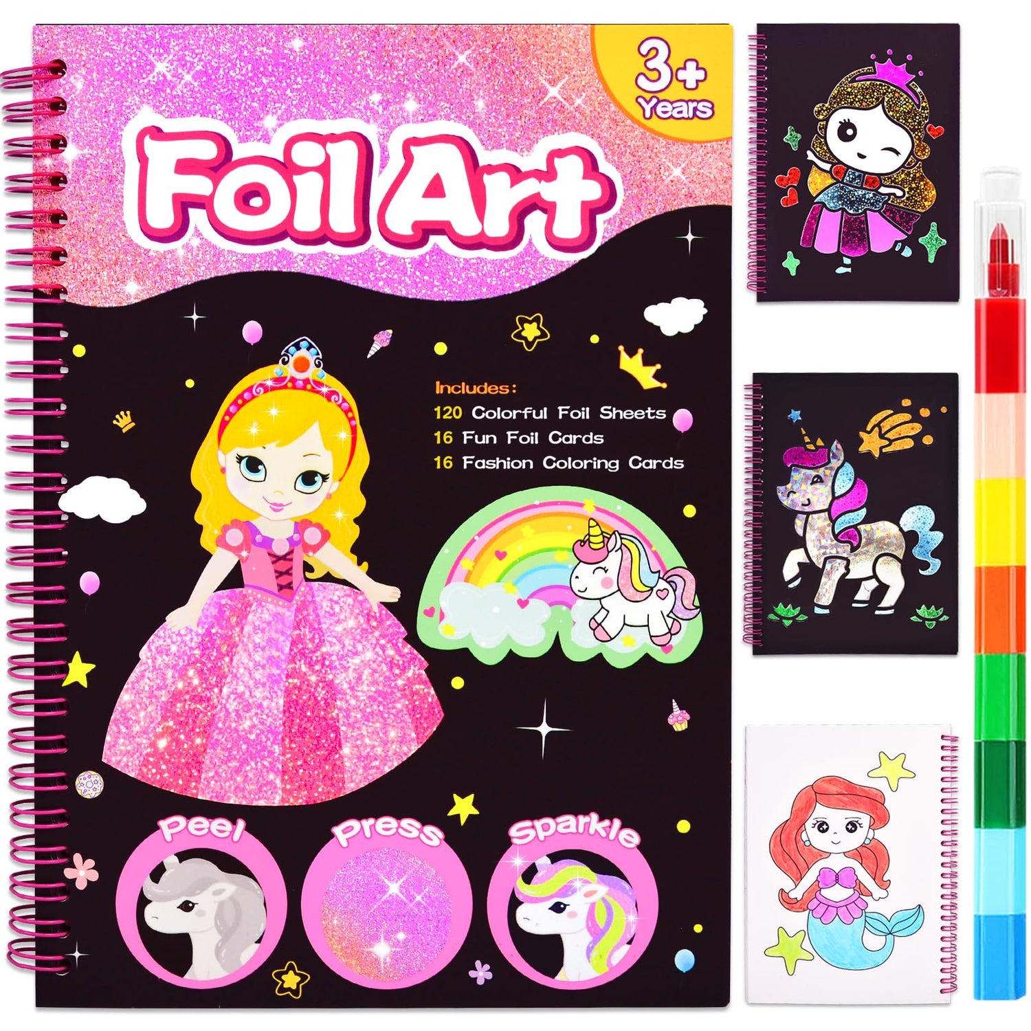 LICSOR Foil Art & Crafts Activity for Kids, Fun Craft for Girls Ages 4-6-8-12, Unicorn Princess 2-in-1 DIY Creative Travel Toys Art Supplies, Birthday Gift Party Favor for Kid 4 5 7 9 10 11 Year Old