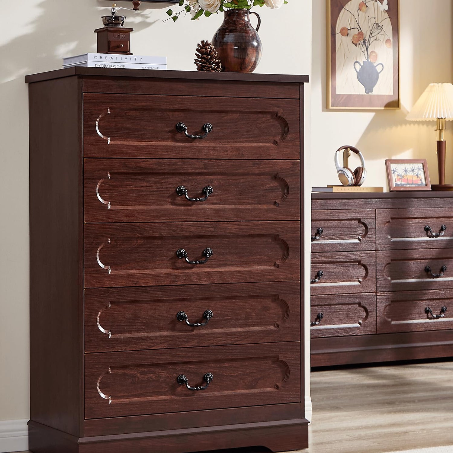 - Chest of Drawers-This versatile Wooden Dresser Chest of Drawers adapts to your needs, serving as a dressing table, TV stand, entry table, and more. Place it in your bedroom, living room, hallway, or any space where you desire both style and functionality