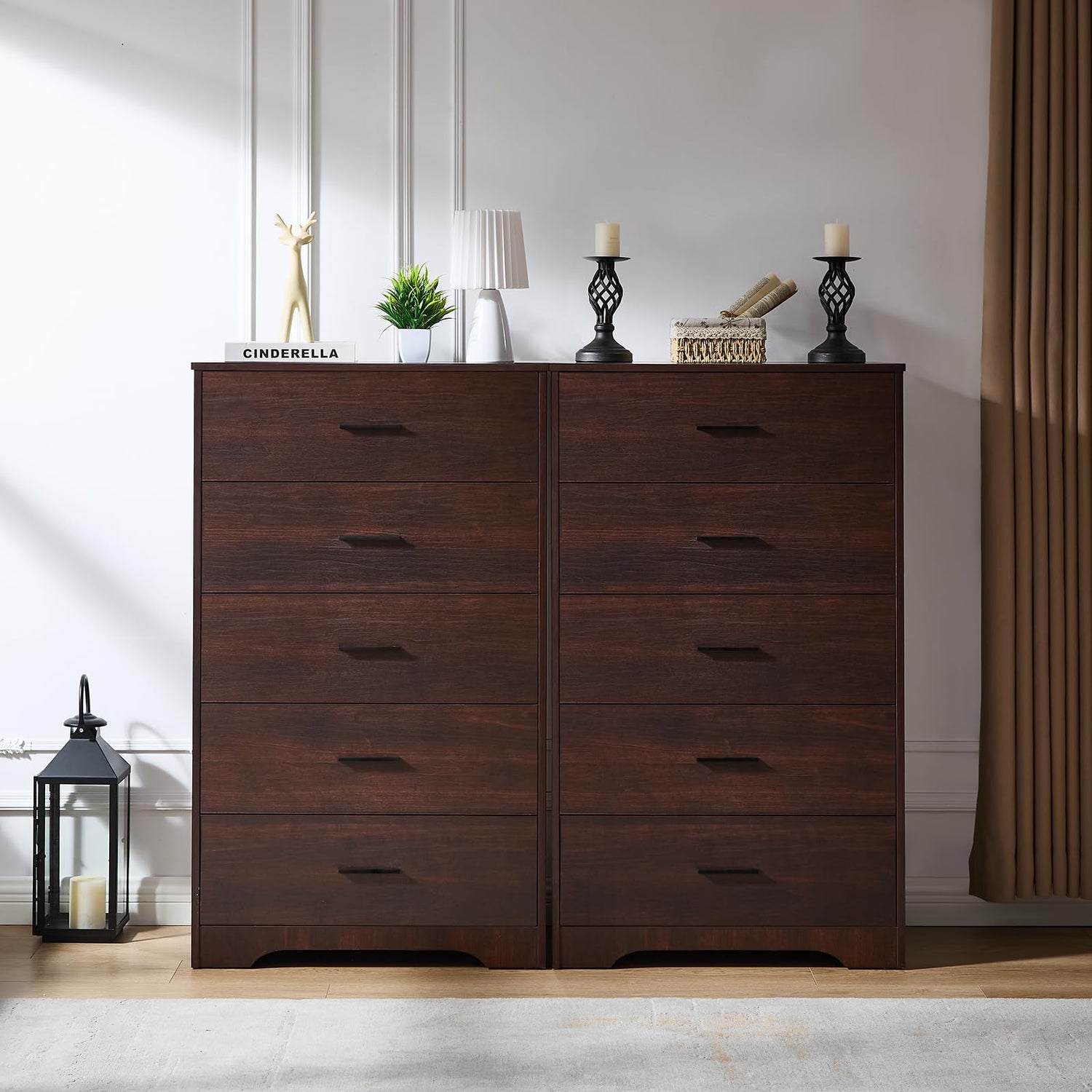- AMPLE STORAGE IN BEDROOM DRESSER: 5 wide drawers in this wooden dresser offer spacious storage options; A flat top allows for displaying items like lamps or can double as a TV stand