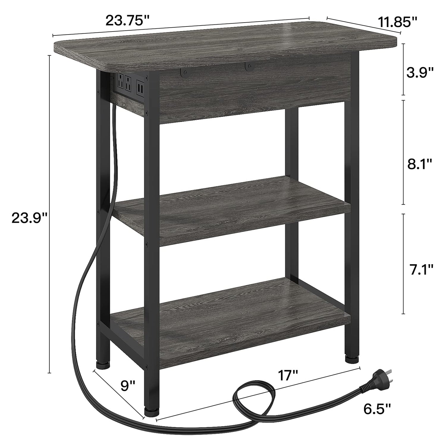 LIDYUK End Table with Charging Station, Flip Top Side Table with USB Ports and Outlets, Nightstand for Small Spaces, Bedside Tables with Storage Shelf for Living Room, Bedroom, Dark Grey