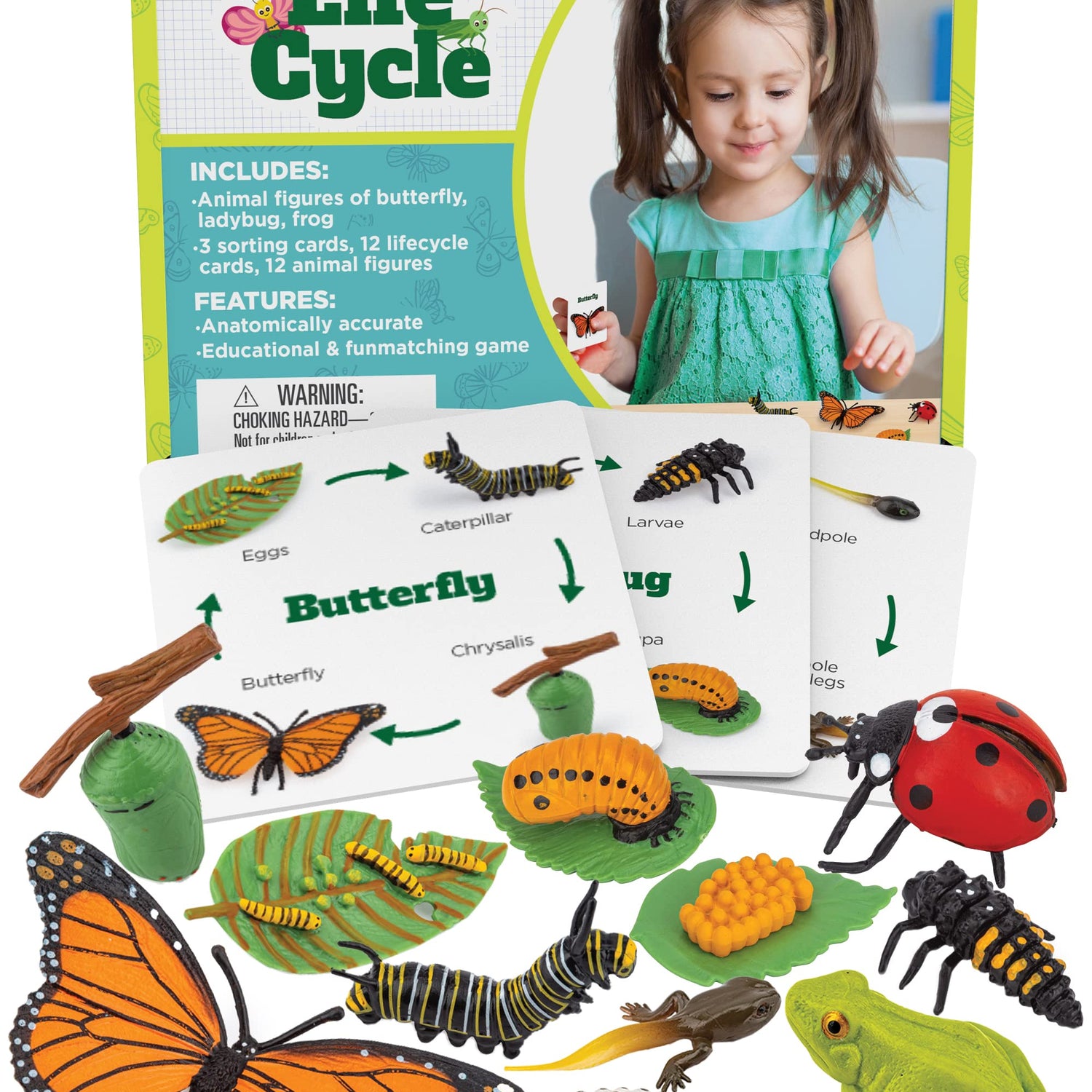 - Learn Animal Life Cycles Through Play Includes butterfly, frog, and ladybug stages in realistic 3D figurines. A hands-on way to explore biology and sequencing with kids ages 3–8.