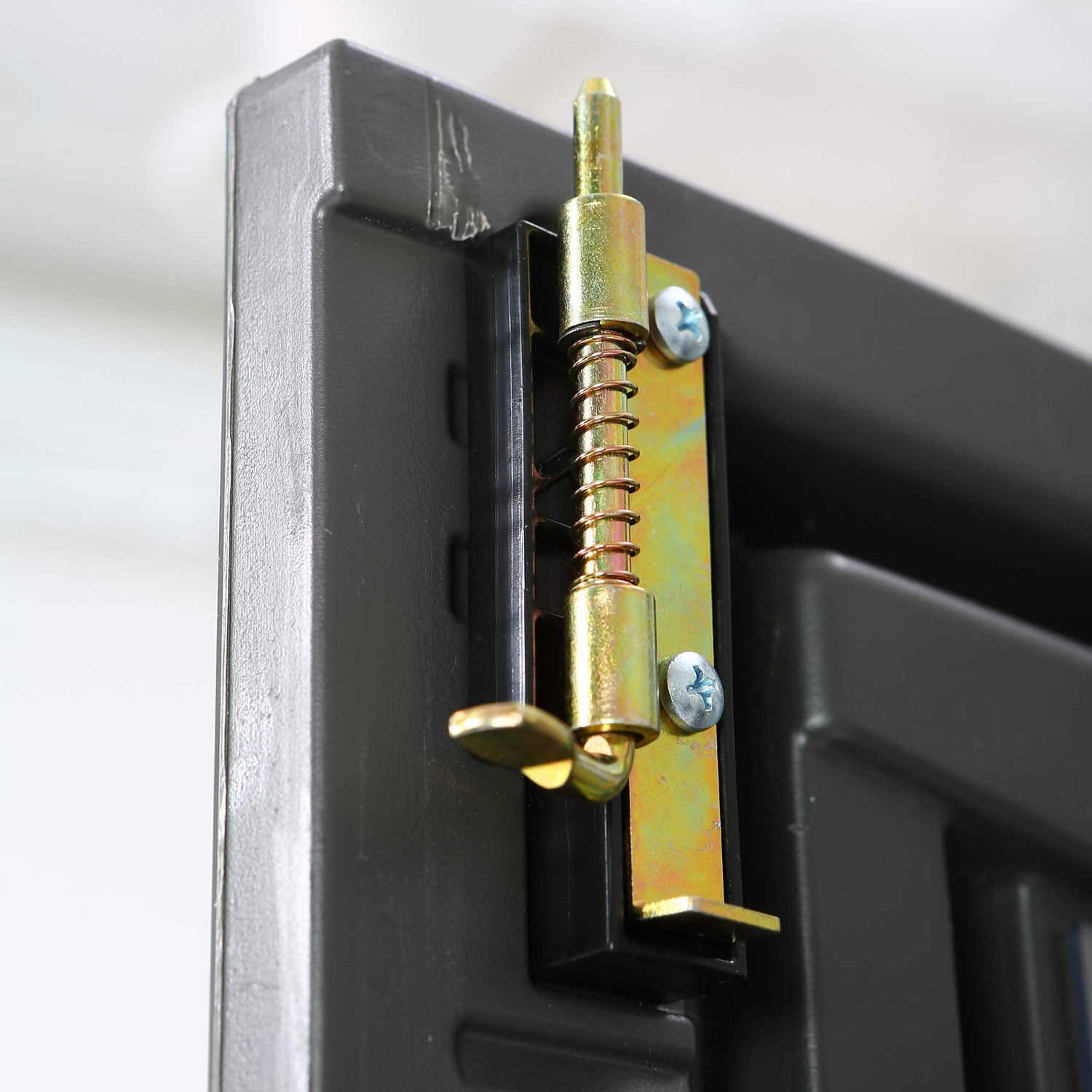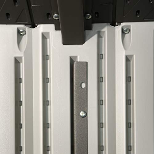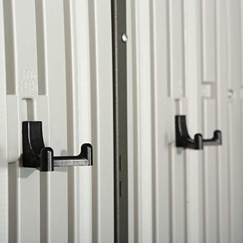 - Attractive appearance and design; UV-protected, stain resistant exterior never needs painting; Comes in gray with a polyethylene floor