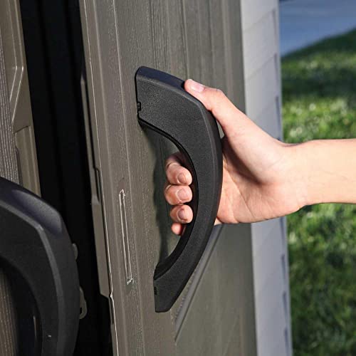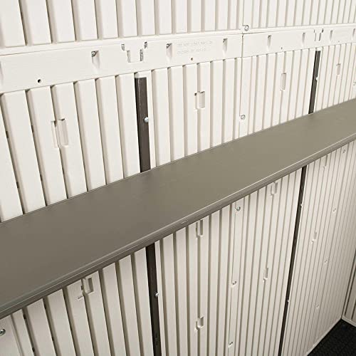 - Level foundation required (not included) | Floor: Oil, stain and slip-resistant floor surface does not crack, chip, or peel. | Lockable Doors: Steel-reinforced doors provide an extra-large opening and sturdy structure. Exterior Padlock Loop (Padlock NOT included) with Two (2) Deadbolts on Interior of Left Door