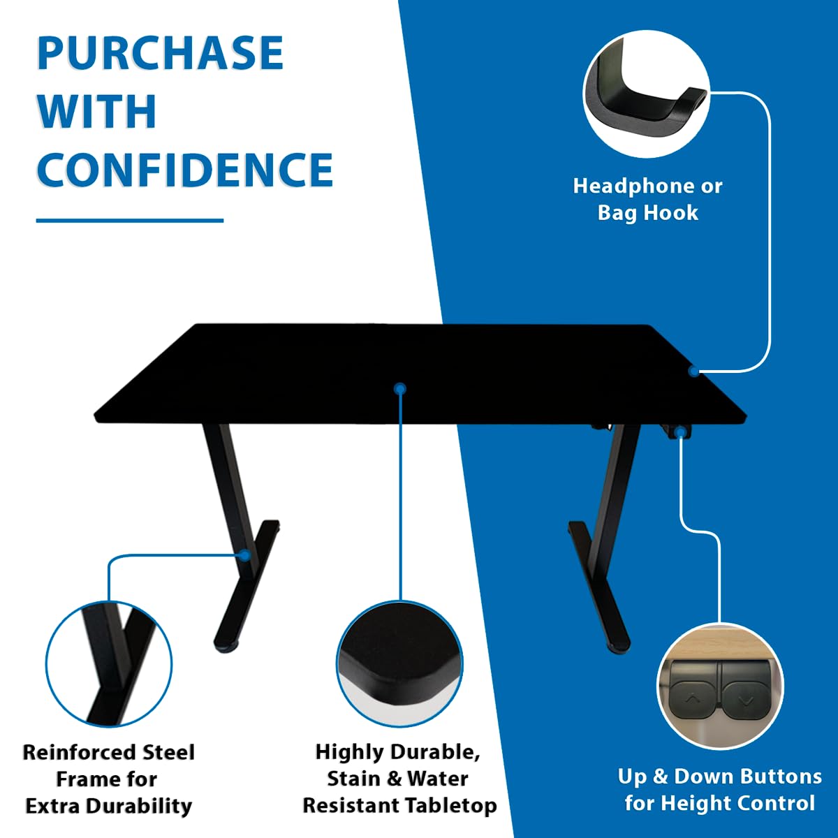 - ✅【 Height Adjustable 】With a touch of a button, effortlessly adjust the height of your computer desk between 27" to 46.5" so you can work, game, or relax in comfort.