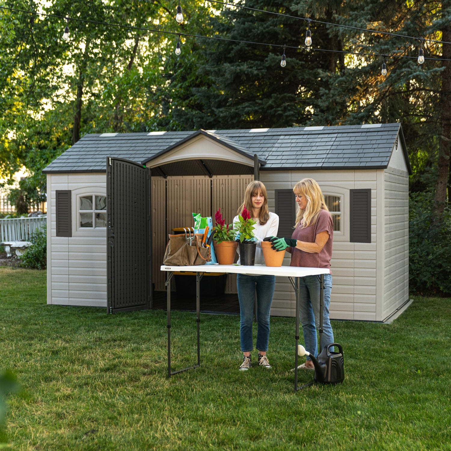 Lifetime Outdoor Storage Shed, 15x8 Ft, Desert Sand, Resin Backyard Tool Shed with Lockable Doors and UV-Protected Panels