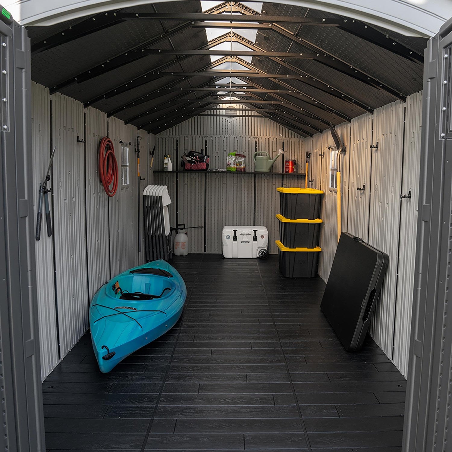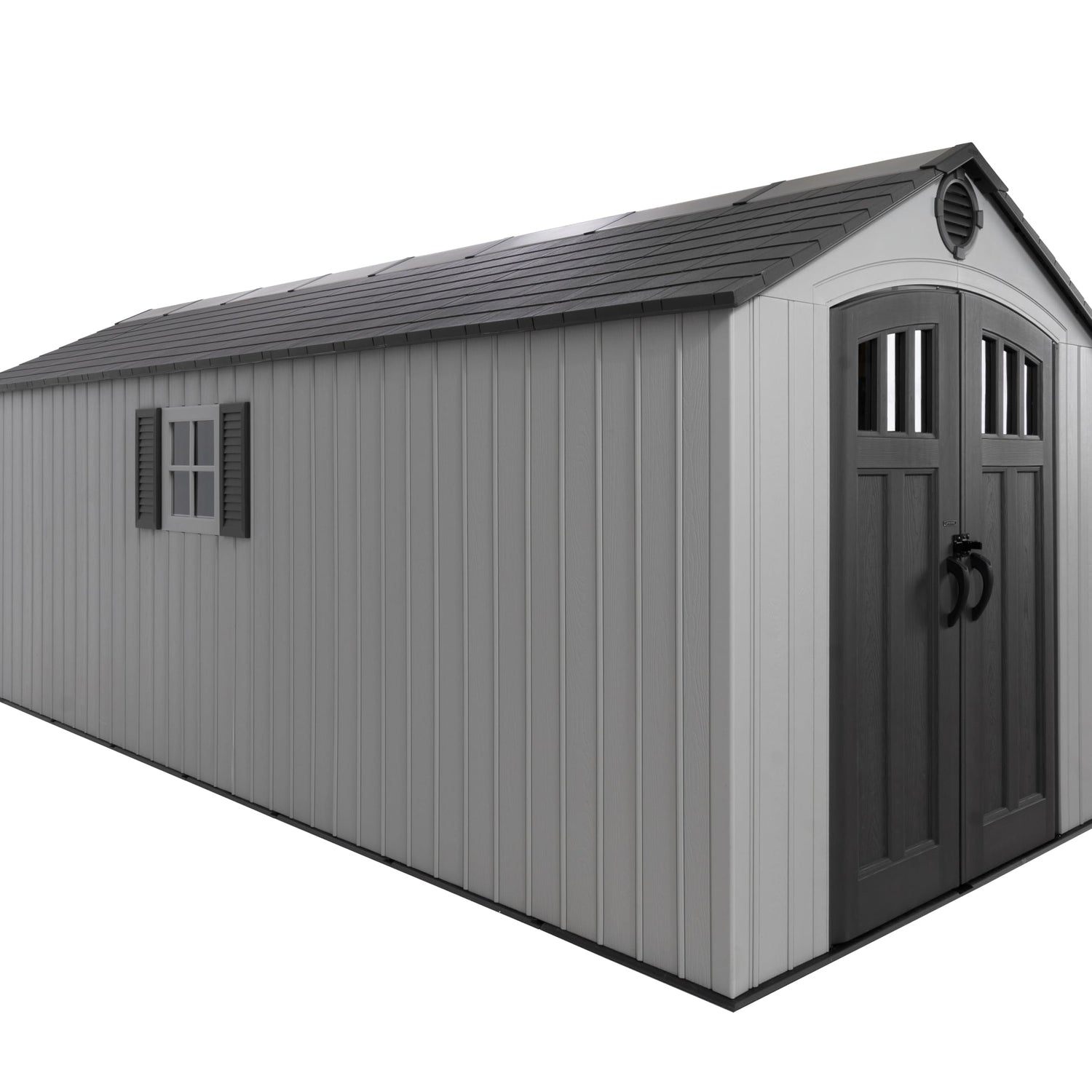 Lifetime Outdoor Storage Shed, 8x20 Ft, Gray, Resin Backyard Tool Shed with Lockable Doors and Weather-Resistant Panels