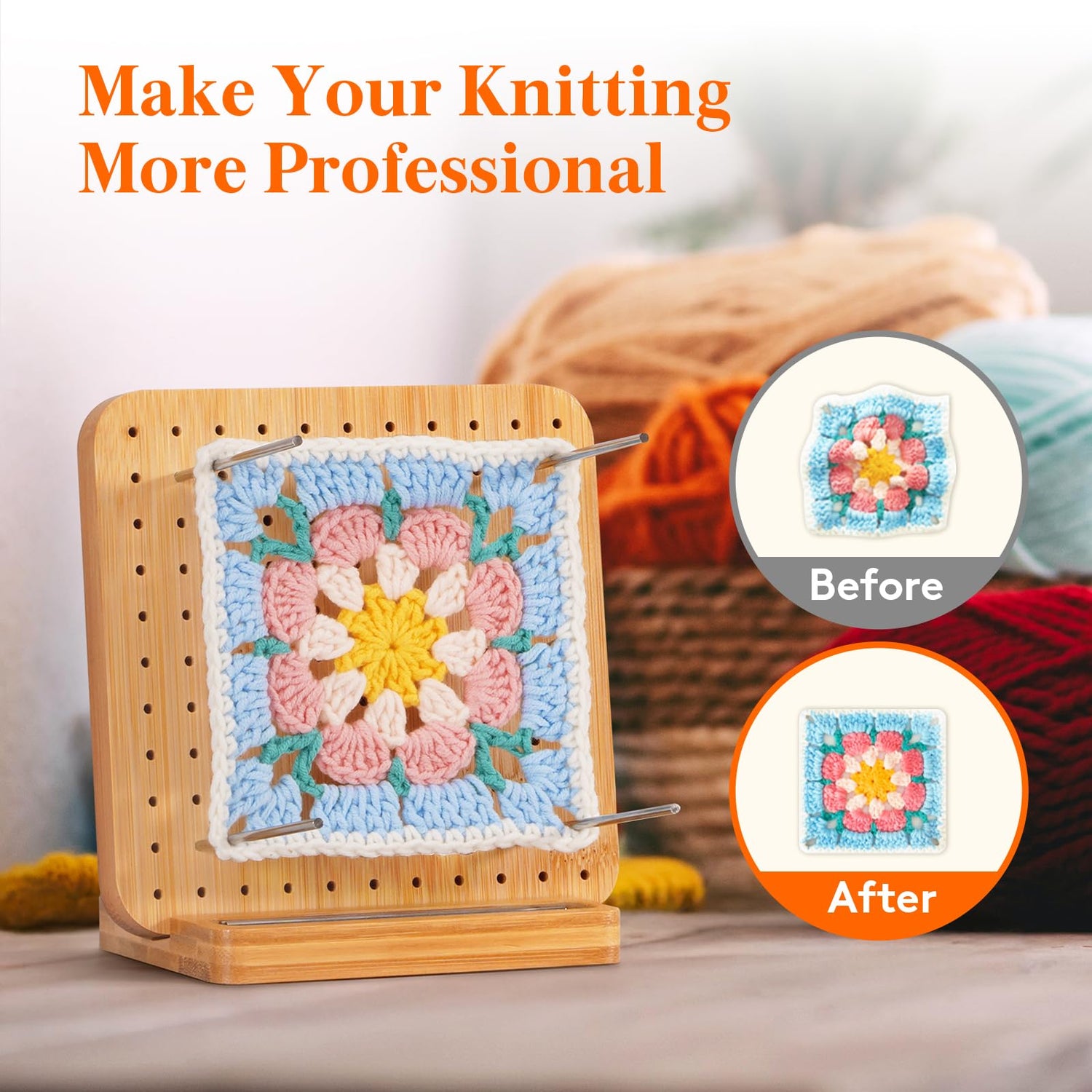 - Ideal for Beginners: Secure your squares with steel pins on the granny square blocking board, spray lightly with water, and let them dry for perfectly even edges. Our blocking board is reusable and you can stack multiple squares for shaping