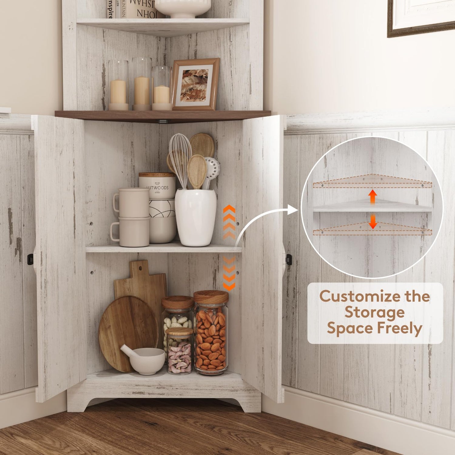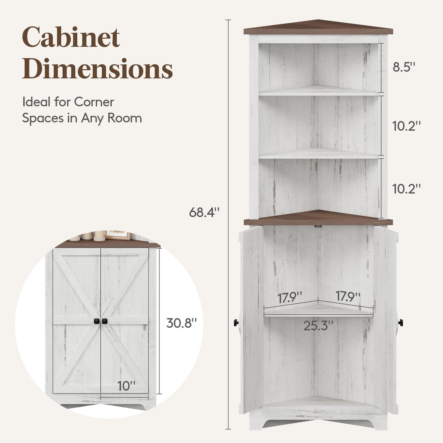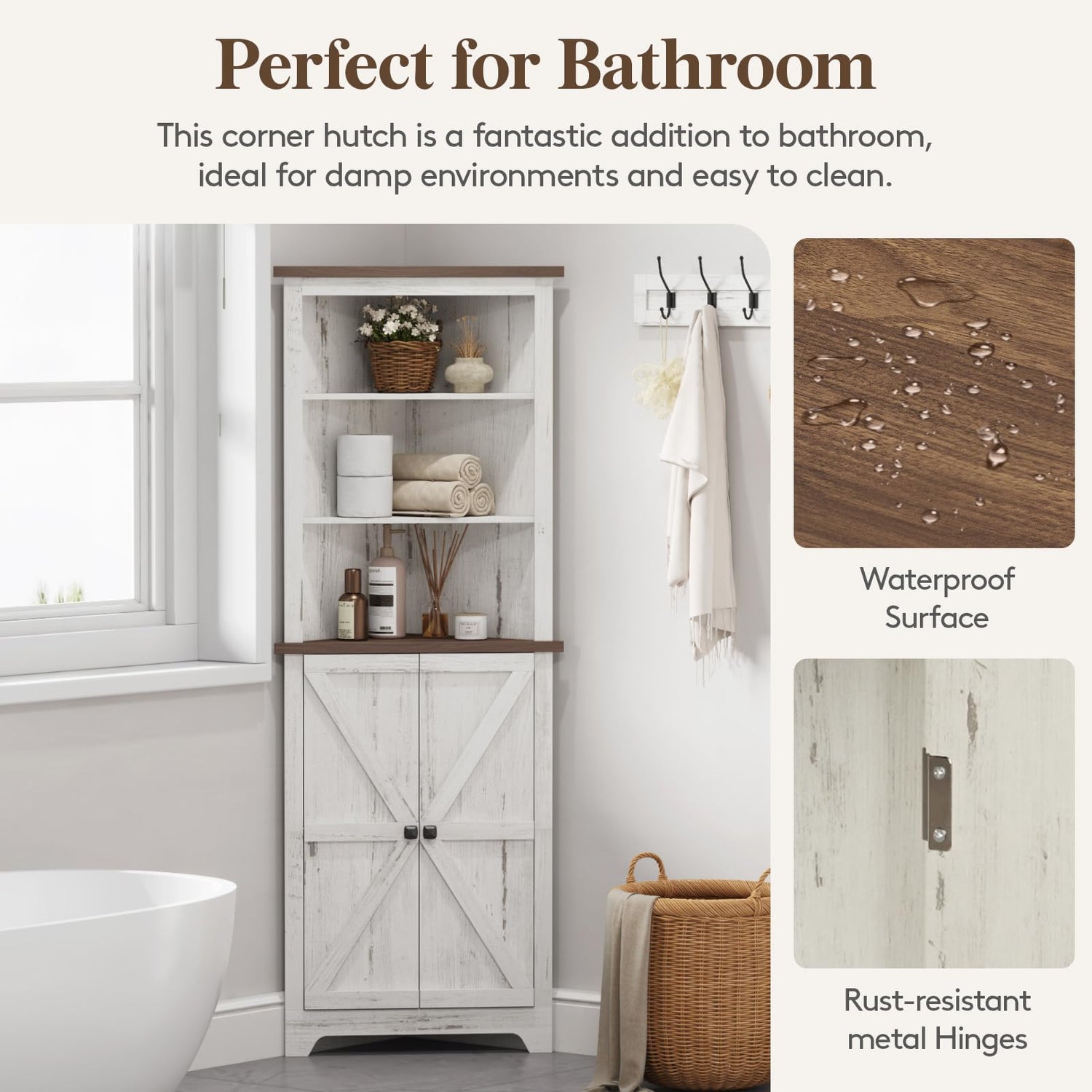 Lifewit Tall Corner Cabinet, Farmhouse Storage Cabinet with Barn Door Design & Adjustable Shelves, Home Space Saver for Bathroom, Living Room, Rustic White