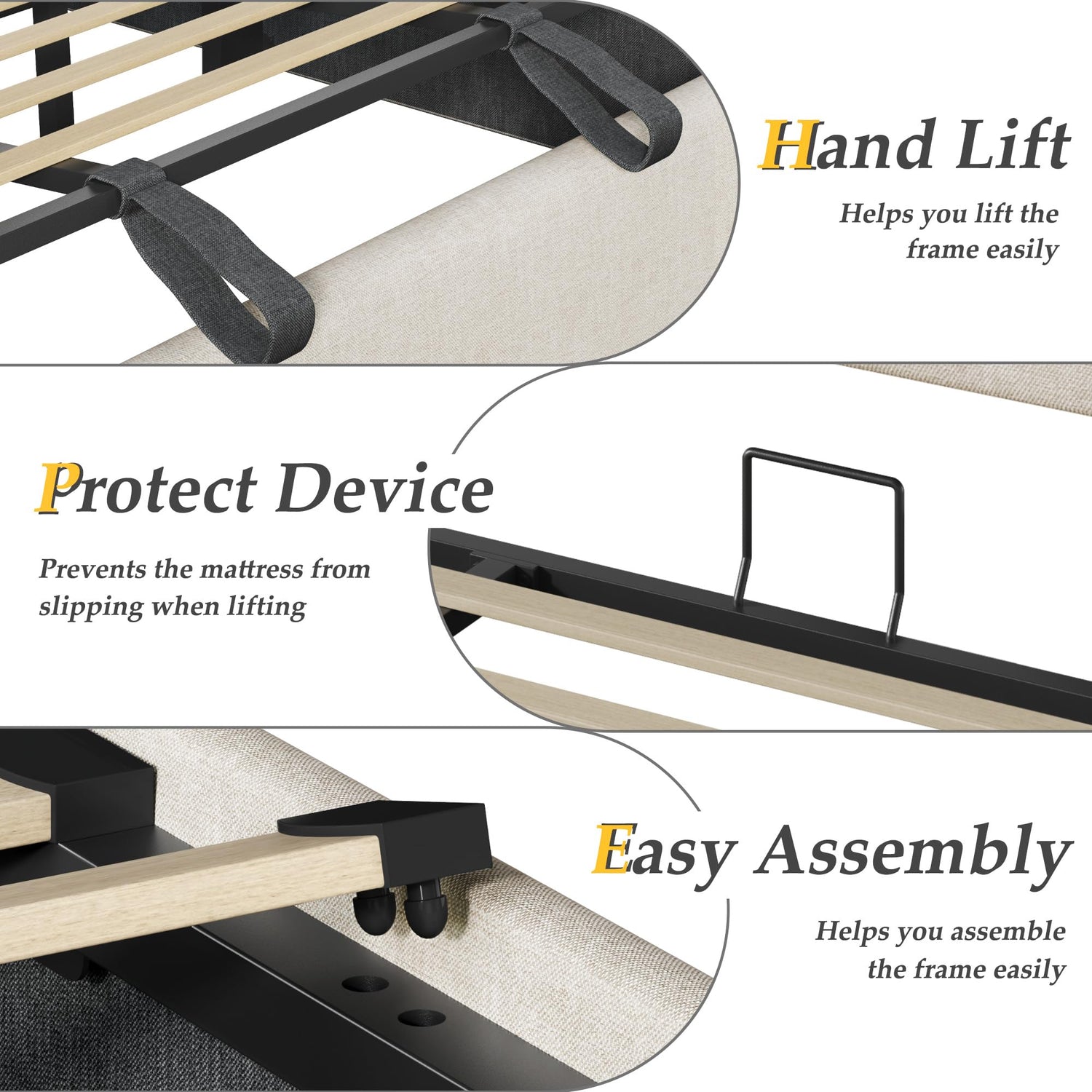 - 【Effortless Hydraulic Lifting & Strong Support】 Worried about heavy lids? Our easy-lift hydraulic system opens with one person effortlessly, making access a breeze for everyone. Supported by 12 reinforced wooden slats and sturdy metal legs, the frame holds up to 1000 lbs securely when closed hydraulic. No box spring needed – just set your 8-14 inch mattress and enjoy peace of mind