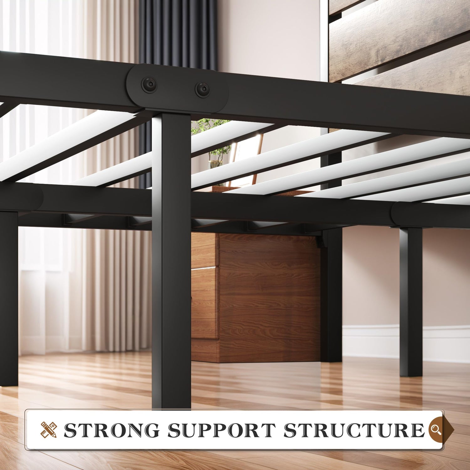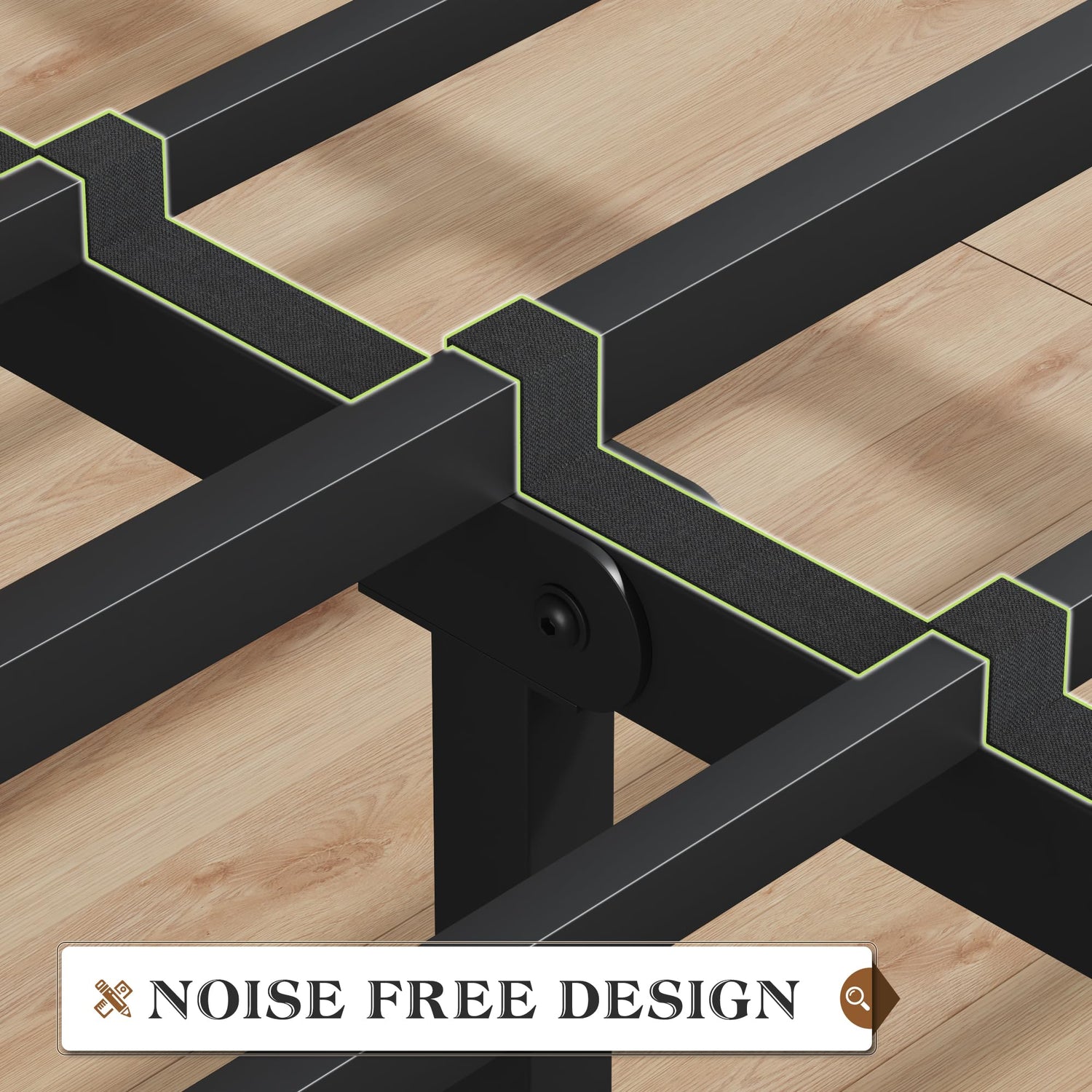 - **Noise-Free Design**: Say goodbye to disruptions during the night. Our bed frame features a specially designed mute sponge bar integrated into the middle beam that reduces friction between metal components, eliminating squeaks. Enjoy a peaceful night’s sleep without the annoyance of noise.