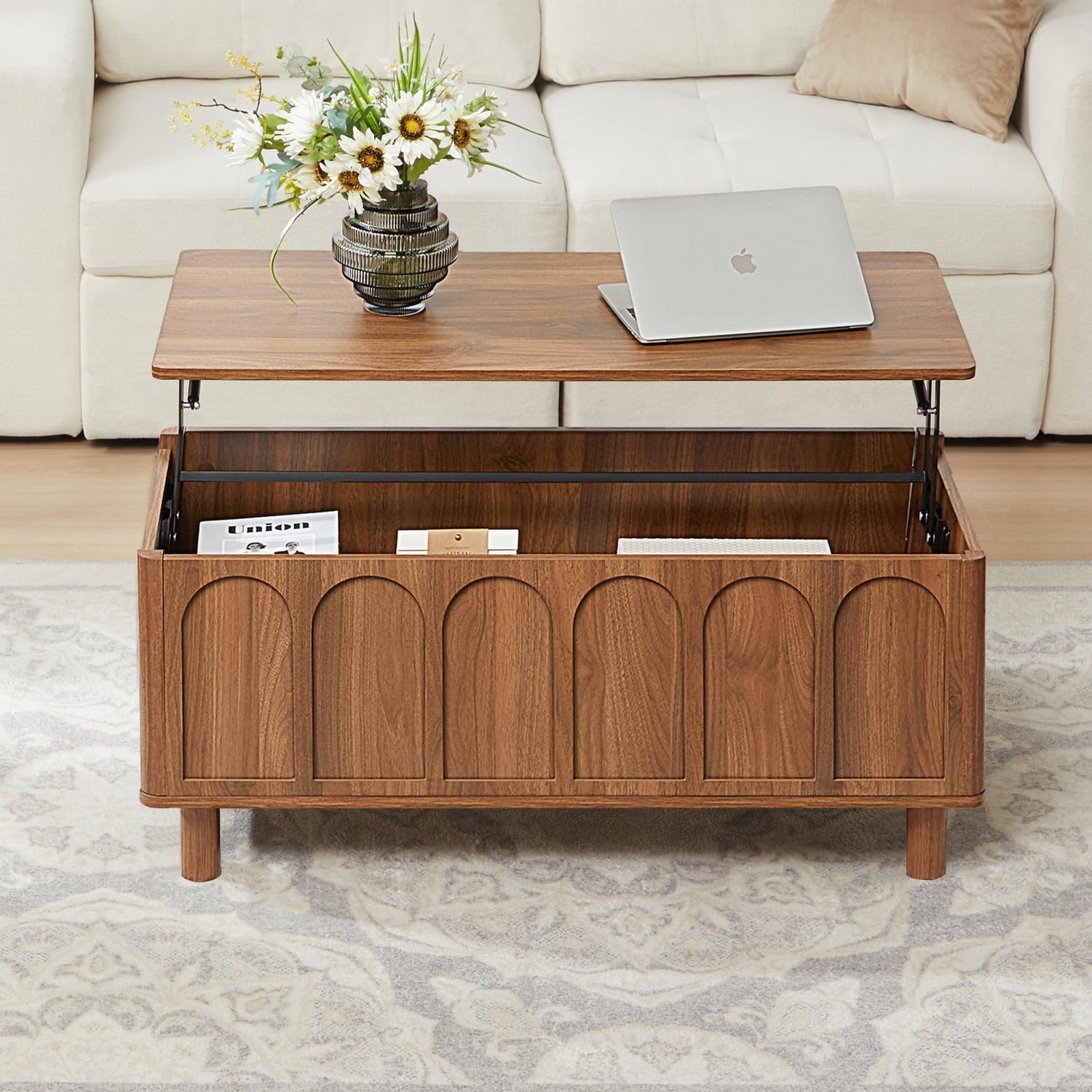 Lift Top Coffee Table with Arched Finish, Modern Coffee Table with Lifting Tabletop & Hidden Storage, Wood Center Table for Living Room,Convenient for Dining, Gaming or Working (Walnut)